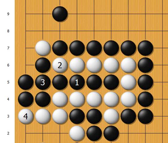 A位粘,有个接不归,化解这个问题就有答案了。难度,业余1段 图一:黑先,如何杀白? 图二:演示一下,黑1粘逃不掉,白2、4可以追吃。 图三:有了图二的印象,黑1挖、3长就是顺理成章的招法了。靠弃子,把白气紧住,黑5再粘,A位白棋不入气,白死棋了。 这种倒推方式寻找答案是常用方法。