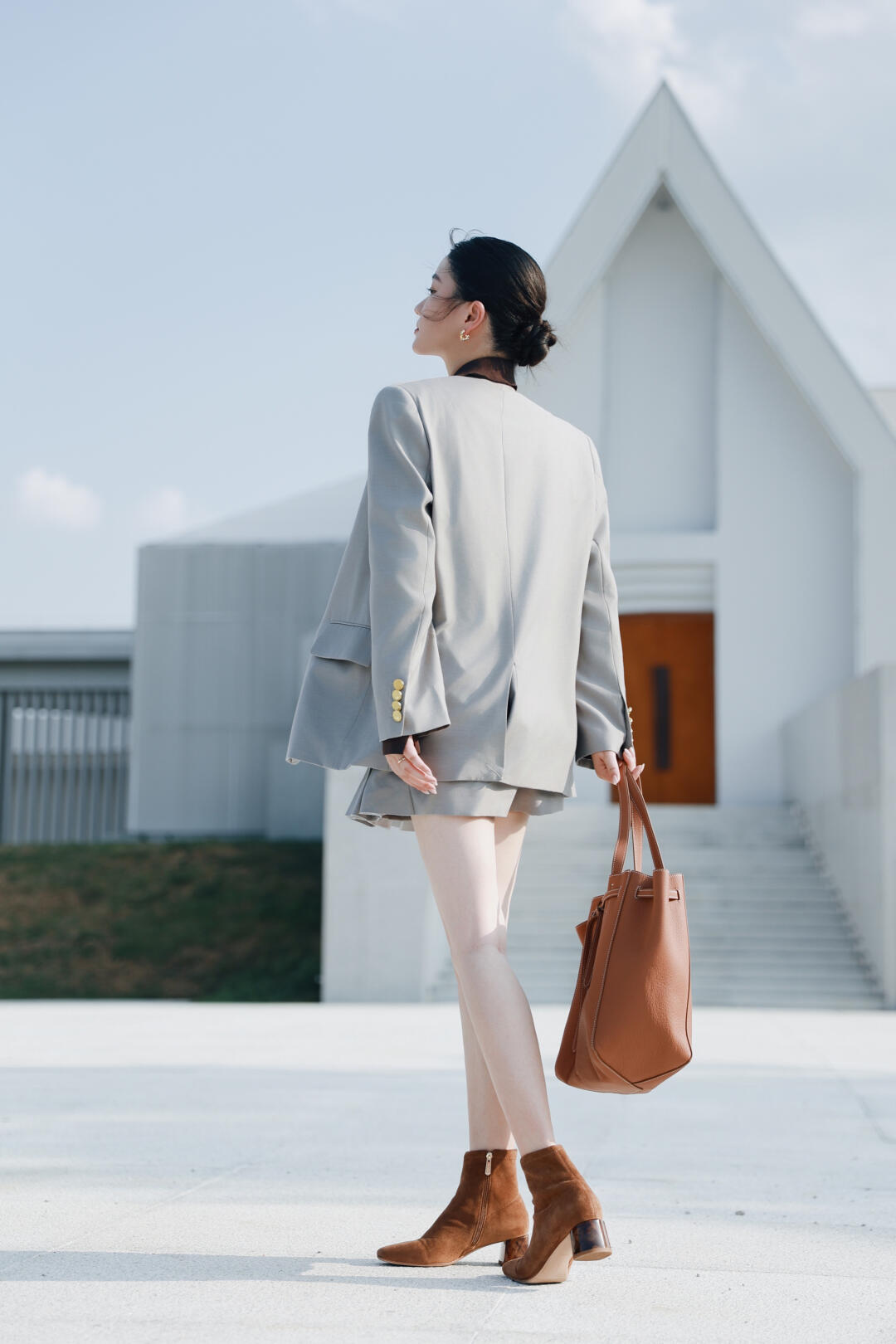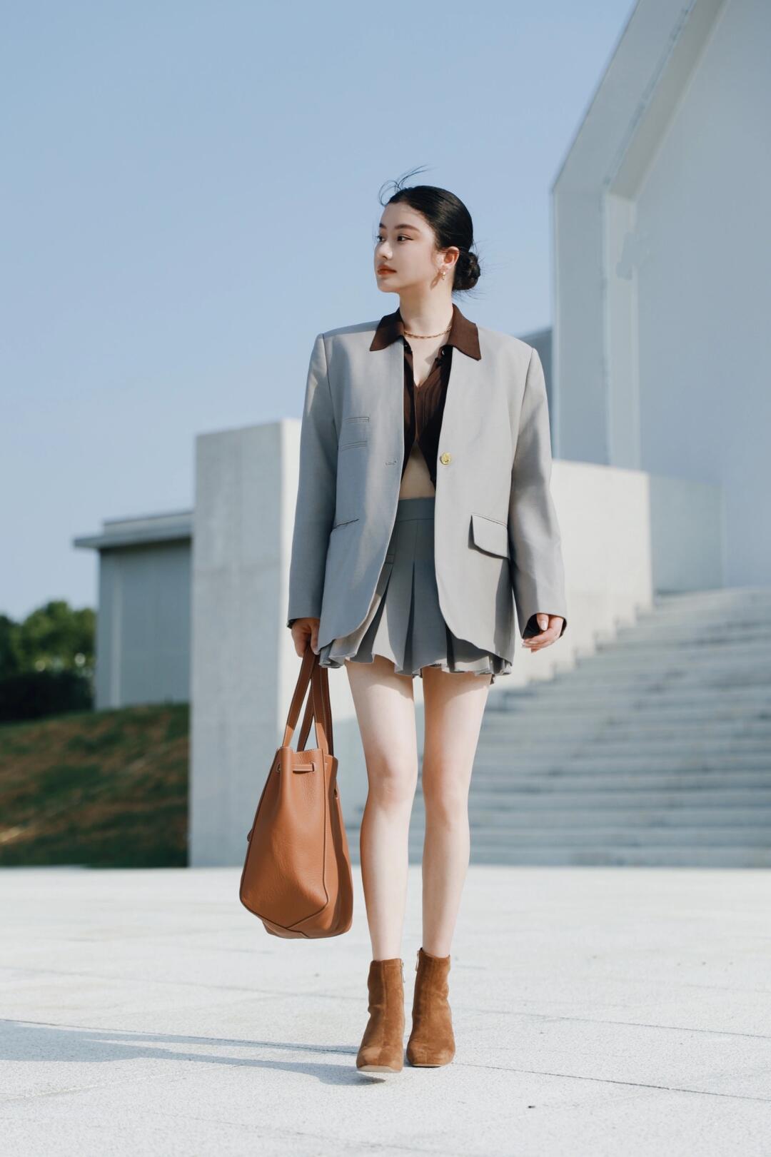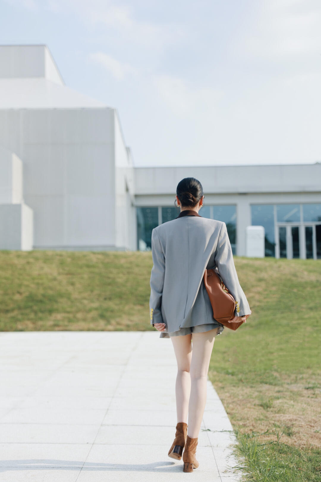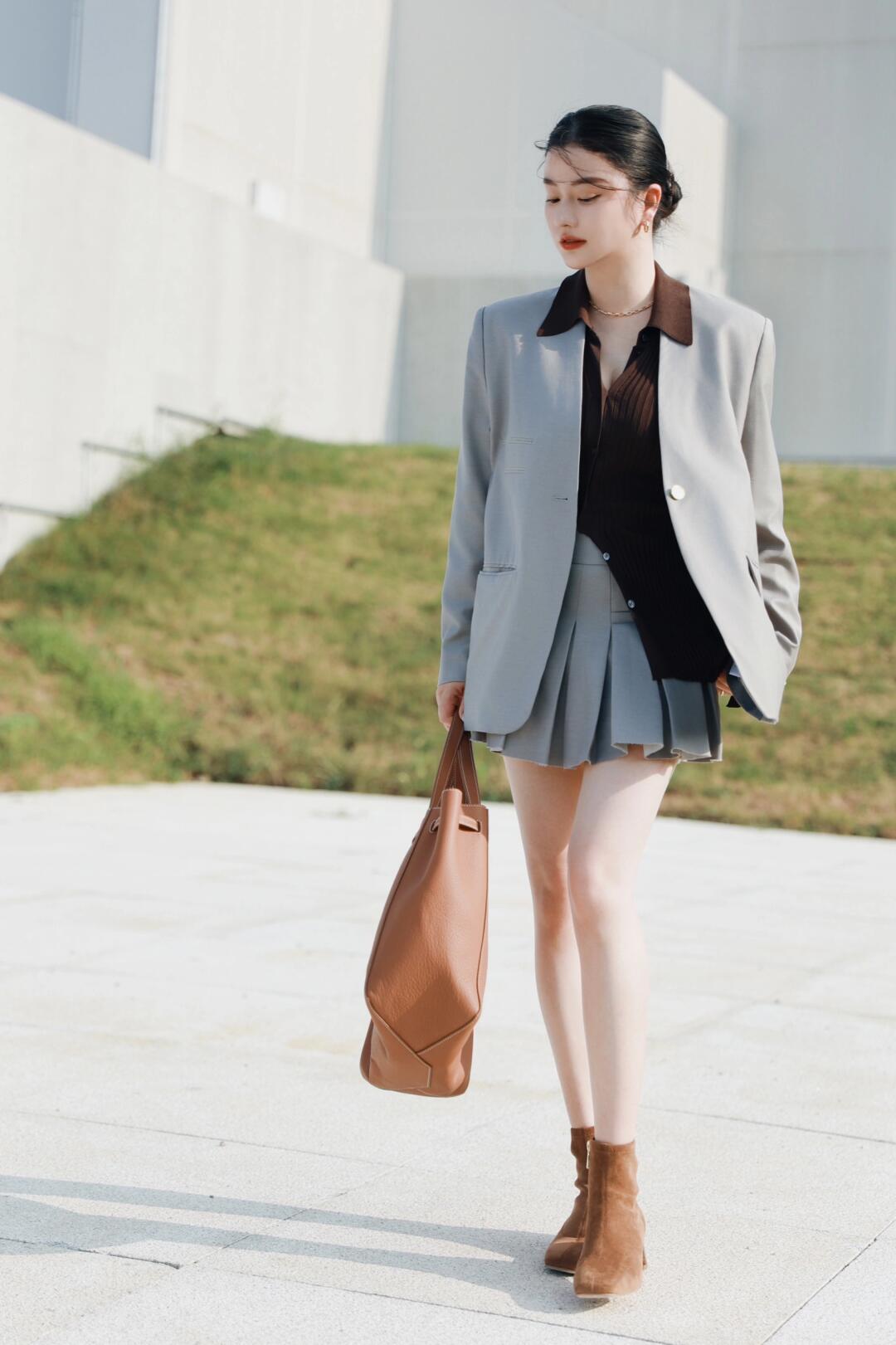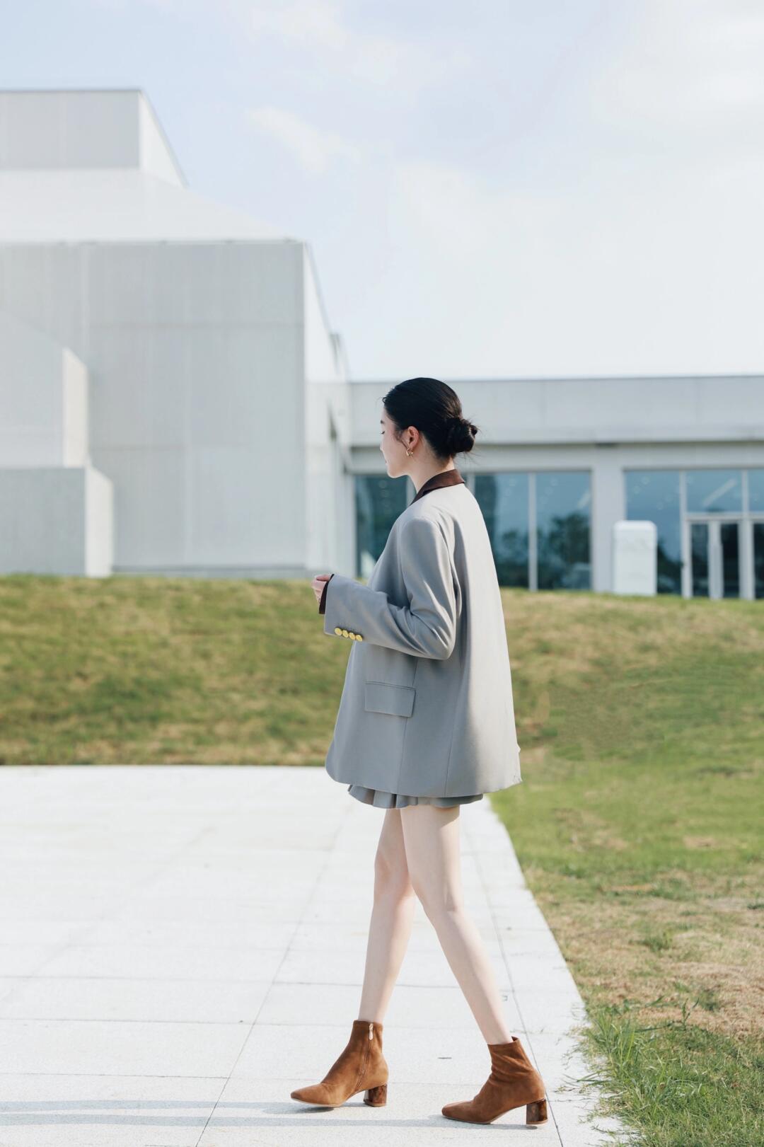 但我总会一边穿得很安全,却又一边热切地怀念经济上行时期的美,廓形西装➕短裤➕短靴就是其中之一。