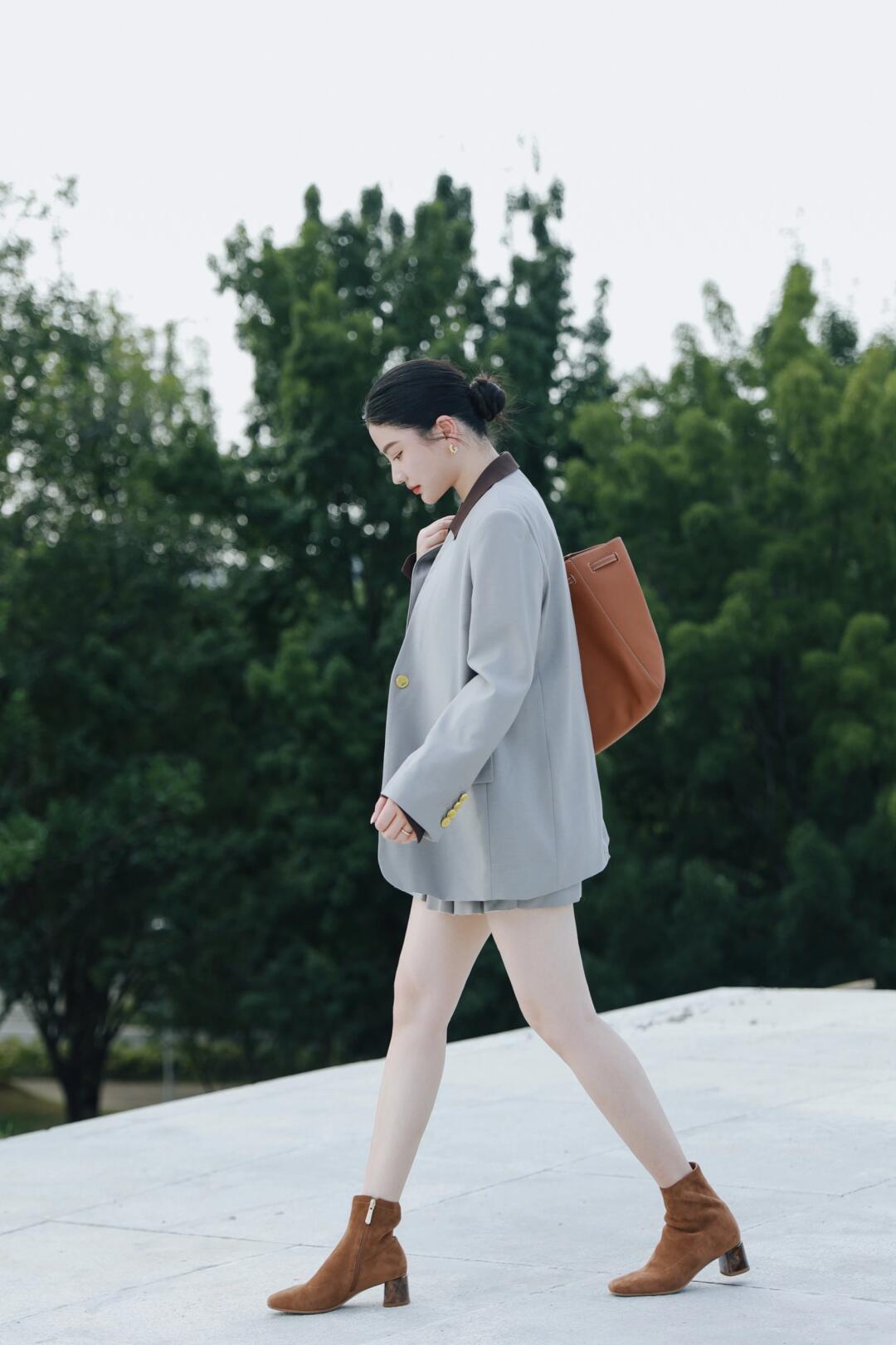 🍂早秋复古穿搭的点睛之笔就是一双巧克力棕色麂皮短靴: