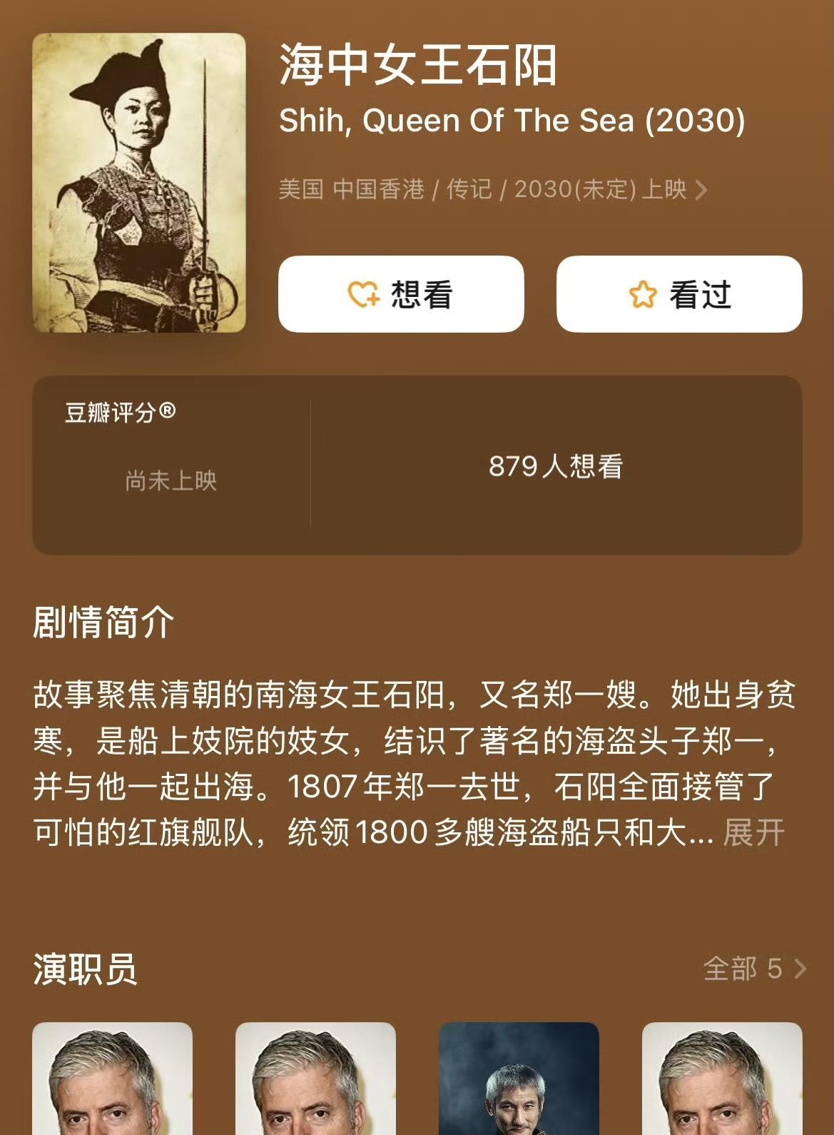 网传徐克监制,好莱坞编剧的电影《海中女王石阳》,正在接触刘亦菲、肖战,如果是真的