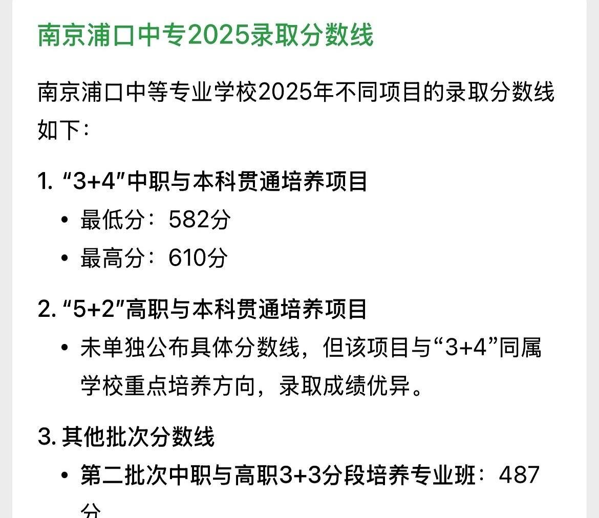 610分去中专,疯了吗? 25个名额,家长连夜排队,比抢演唱会还疯。 南京浦口,610分尖子生放弃四星高中,改填中专。 不为省钱,只为三年后直接拿晓庄学院本科文凭。 计算机+大数据小班,毕业月薪九千起,去年就业率九成。 家长算过账:省两年复读费,早一年挣钱,稳。 隔壁校长急红眼:晚自习加到十点,尖子生还是跑。 家长一句话:孩子不是刷题机器,能拿学位还能拿本事才值。 前三年成绩得稳在前50%,数学英语卡得死,想躺平没门。 25个名额明年可能翻倍,算盘声只会更响。 分数不是终点,选对赛道才是。