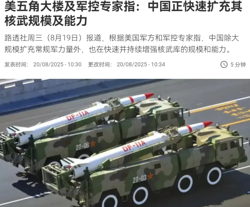 美国越看我们越不舒服!美国五角大楼专家声称,中国不仅大规模扩充常规军力量,也在快速并持续增强核武库的规模和能力。8月20日,根据外媒报道,外媒援引美专家观点声称,中国正在以比其他任何核武国家更快的速度扩充和现代化其武器库,中国目前已拥有约600枚核弹头。