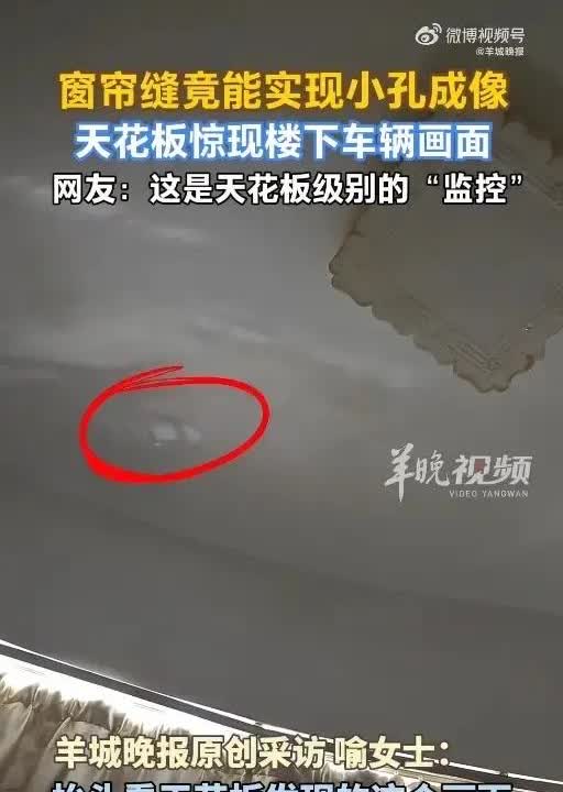 “解释不清了!”近日,湖北武汉,一女子在家午休时,因光线太强就拉上了窗帘,结果等她躺到床上时,竟从天花板上看到了楼下的车辆!惊叹之余,女子将经历分享到网上,没想到还有和她有一样经历的人。 网友表示:书上就说看日偏食时候如果没有眼镜,直接拿纸板挖一个小洞看投影即可 这还怎么睡觉,一晚上都盯着谁在车里抽烟,谁后半夜才回家,垃圾车几点收垃圾,保安过来几趟了。 突然懂了古代人看皮影戏的灵感来源,说不定就是某天午休抬头撞见了这场景?[笑哭][笑哭] 读小学的时候,课文里面都说过小孔成像。 大家怎么看?