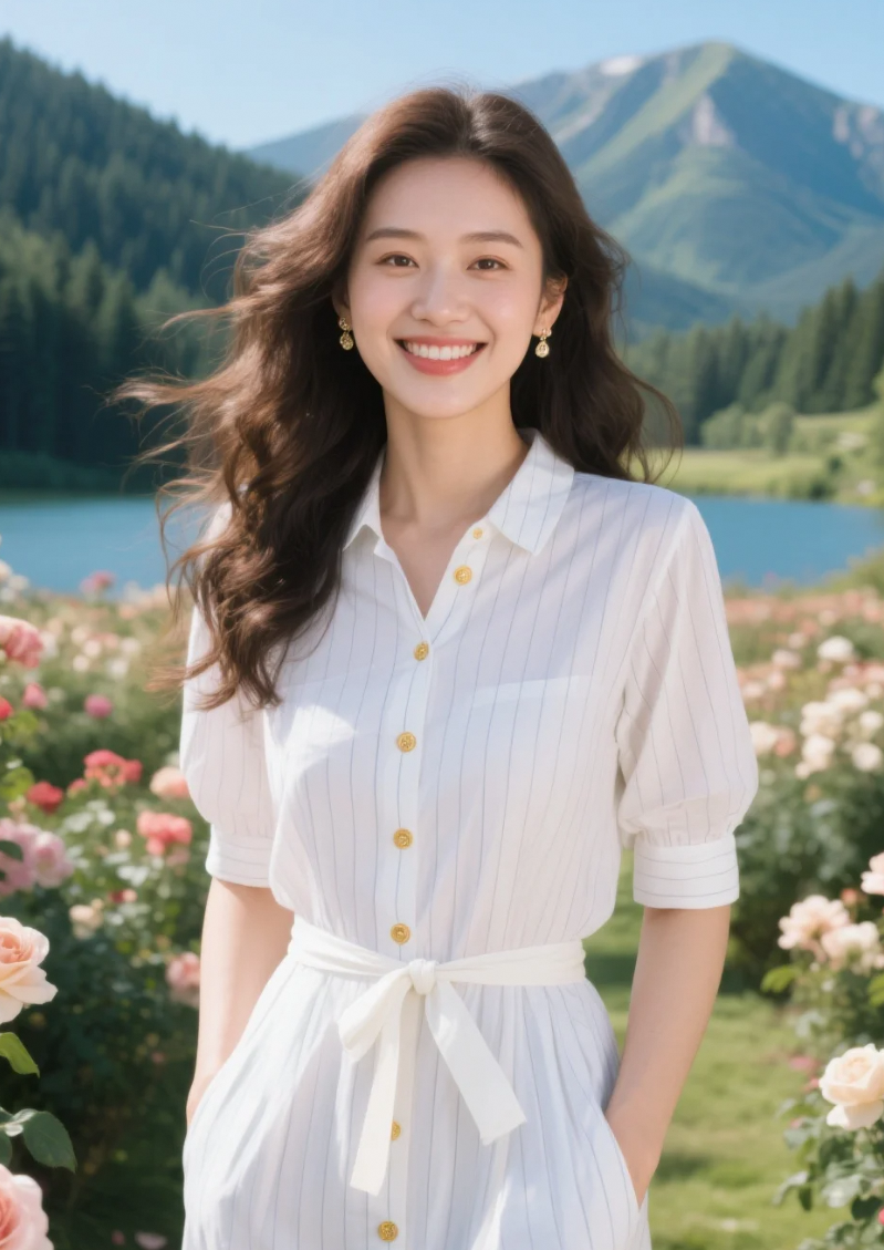 风吹起她的发,也吹动了玫瑰的心事