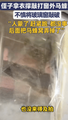 胆子真大!”北京一男孩拿衣撑敲打窗外的马蜂窝,没想到,竟把玻璃给敲碎了,只有窗纱挡着马蜂不进来,男孩顿时就懵了,反应过来后赶紧跑路,生怕马蜂攻击到自己,网友:心有多大,你肿起来就有多大! “当时人就懵了,玻璃怎么碎了,赶紧跑赶紧跑!”这句惊慌失措的呼喊,道出了北京一名男孩近日遭遇的惊魂一刻,8月19日,北京一名男子带着侄子在窗边观察外墙上的马蜂窝,本是一次隔着玻璃的"安全"观察,却因孩童的好奇心演变成了一场惊险的意外。 事发当天,这名男子带着年幼的侄子在家中休息,突然孩子注意到窗外墙壁上悬挂着一个硕大的马蜂窝,密密麻麻的马蜂在周围飞舞,引起了强烈的好奇心,男子见状,便带着侄子来到窗边,打算隔着玻璃让孩子近距离观察这些自然界的"建筑师",他以为这样既能满足孩子的好奇心,又能确保安全,却未曾想到这个决定差点酿成大祸。 孩子看着窗外忙碌的马蜂,兴奋不已,渐渐地单纯的观察已经无法满足他的探索欲,他环顾四周,看到了墙角立着的衣架,一个危险的想法在脑海中形成,在男子转身的瞬间,孩子迅速抓起衣架,朝着玻璃窗敲去,似乎想试探一下马蜂的反应,然而孩童的力量难以控制,只听"哗啦"一声脆响,整块玻璃应声而碎,碎片四溅。 玻璃破碎的瞬间,男子和孩子都愣住了,更可怕的是,部分马蜂被惊动,开始通过破碎的窗户向室内飞来,孩子吓得脸色煞白,本能地扔掉衣架,转身就跑,嘴里还不停地喊着"赶紧跑赶紧跑",男子也反应过来,一把抓住孩子的手腕,两人慌不择路地冲向房间另一侧,关紧了所有通往该房间的门。 幸运的是窗户上还装有纱窗,虽然玻璃已经破碎,但纱网暂时阻挡了大部分马蜂进入室内,只有少数几只马蜂费劲地穿过纱网的小孔,飞进了房间,男子迅速找来杀虫剂,小心翼翼地处理了这些"入侵者",同时立即联系了专业的除蜂人员前来处理窗外的马蜂窝。 事后,男子回忆起这一幕仍心有余悸,他表示,自己当时确实疏忽了,没想到孩子会做出如此危险的举动,马蜂的攻击性很强,如果当时没有纱窗阻挡,后果不堪设想,这起事件在网上传开后,引发了网友们的热议。 有网友表示:"孩子的好奇心是天性,但家长的安全意识必须跟上,这次是运气好,下次可能就没这么幸运了。" 另一位网友则认为:"现在很多孩子生活在城市里,对自然界的危险缺乏认知,家长应该多给孩子普及这方面的知识,而不是简单禁止了事。" 这次意外虽然没有造成人员受伤,但给当事人和所有关注此事的人都敲响了警钟,好奇心是孩子的天性,但安全永远是第一位的,如何在满足孩子探索欲的同时确保安全,是每个家长都需要思考的问题。 对此你怎么看?欢迎大家在评论区留言讨论。