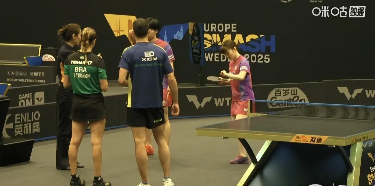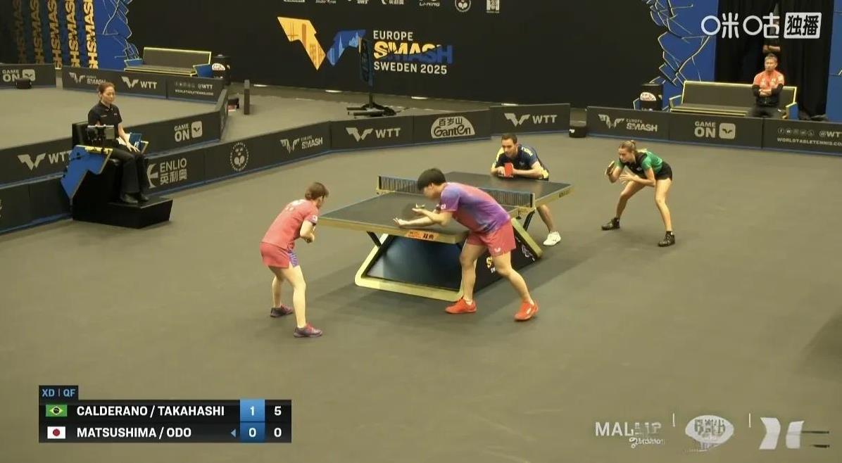 让二追三!日本强档率先晋级混双4强! 北京时间今晚,WTT欧洲大满贯瑞典站混双1/4决赛迎来一场引人瞩目的较量,巴西情侣档雨果/高桥·布鲁娜对阵日本的松岛辉空/大藤沙月组合。 双方实力接近,比赛跌宕起伏。最终日本组合让二追三,以3:2(7:11、8:11、11:7、11:4、11:7)大逆转战胜对手,率先晋级混双4强。 恭喜松岛辉空/大藤沙月!也为雨果/高桥·布鲁娜点赞! 有意思的是,雨果当着女朋友的面,也不好意思换体恤了!