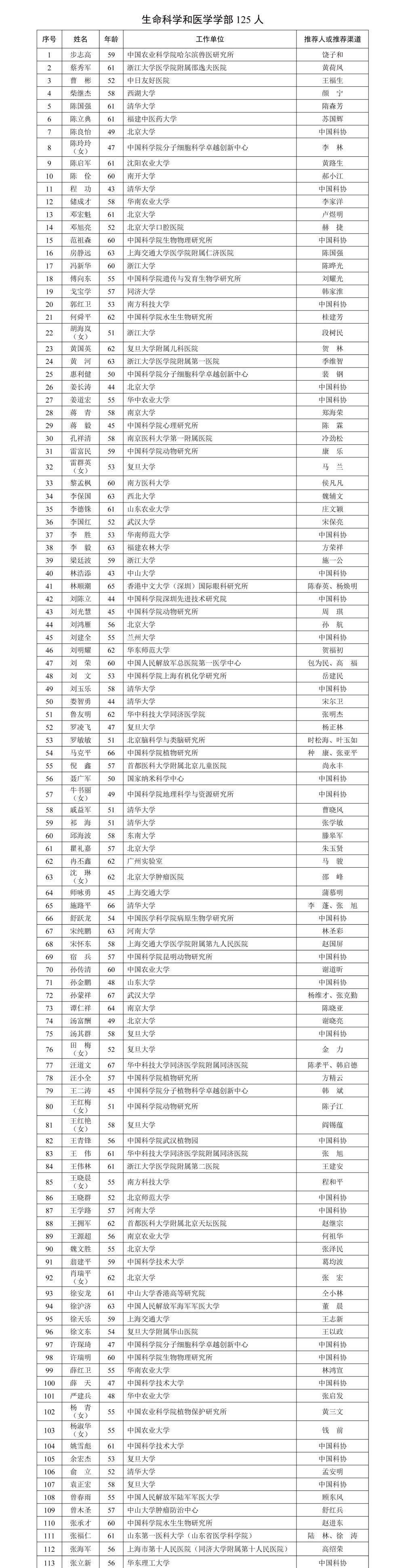 8月20日,中国科学院和中国工程院2025年院士增选有效候选人分别在中国科学院和