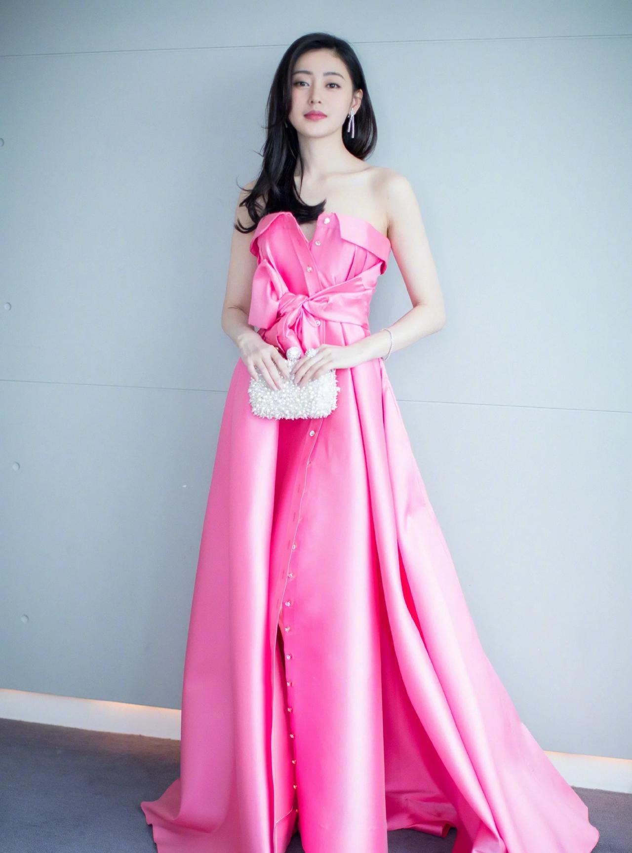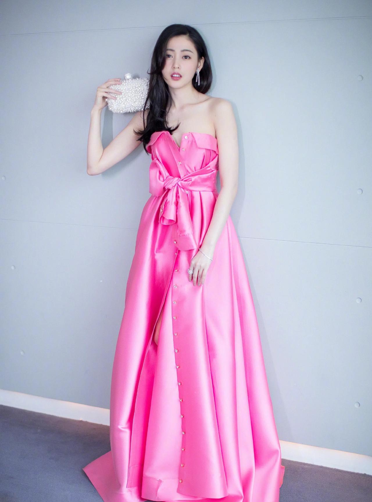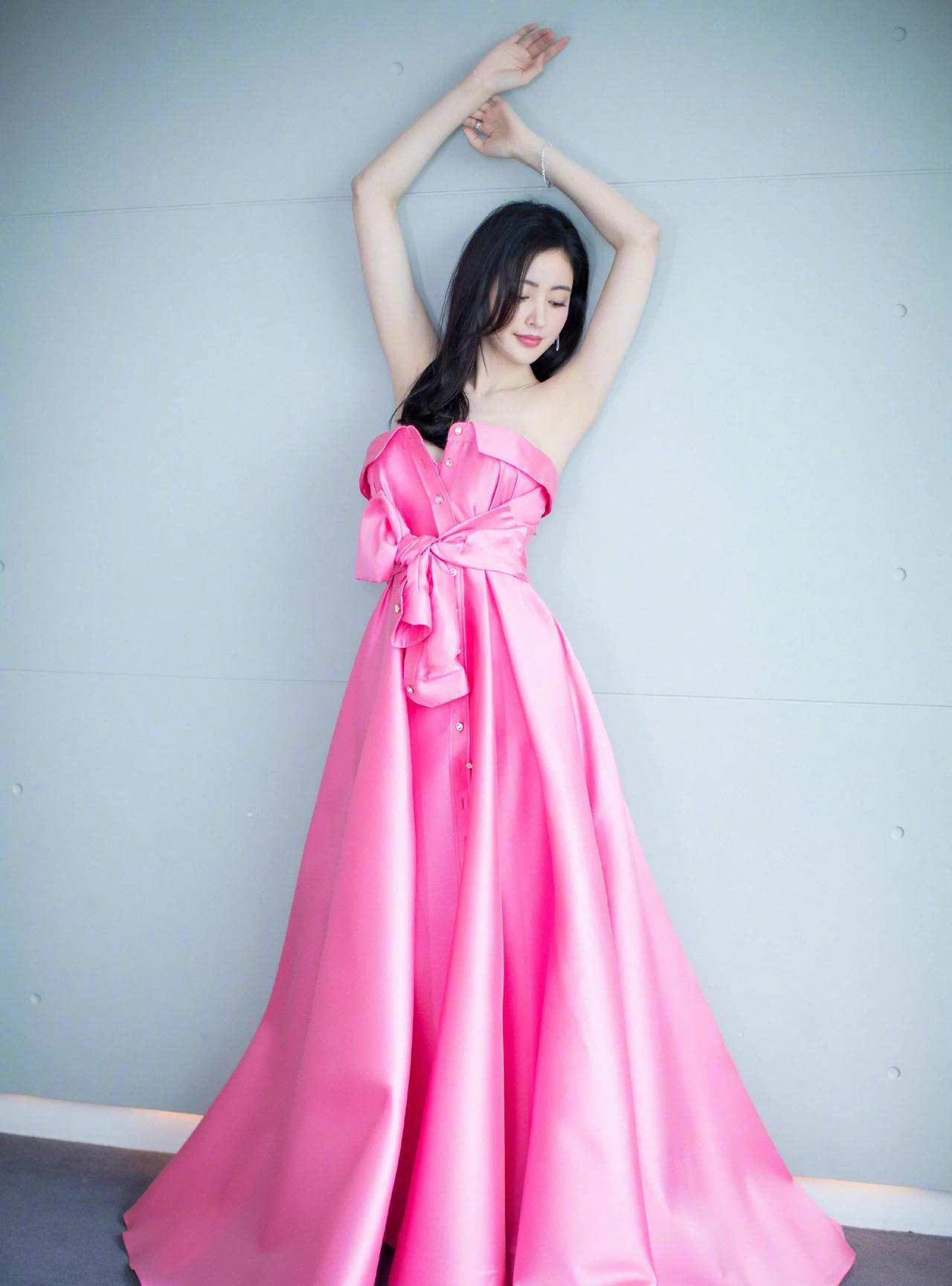 张天爱穿芭比粉抹胸裙,蝴蝶结掐出腰,珍珠包一拿,长发一甩,这身材性感得要“炸场”,美到开挂!