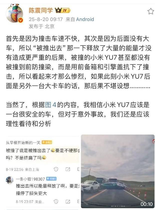 陈震: 我相信小米YU7应该是一台很安全的车,但对于意外事故,我们还是应该理性看待和分析!