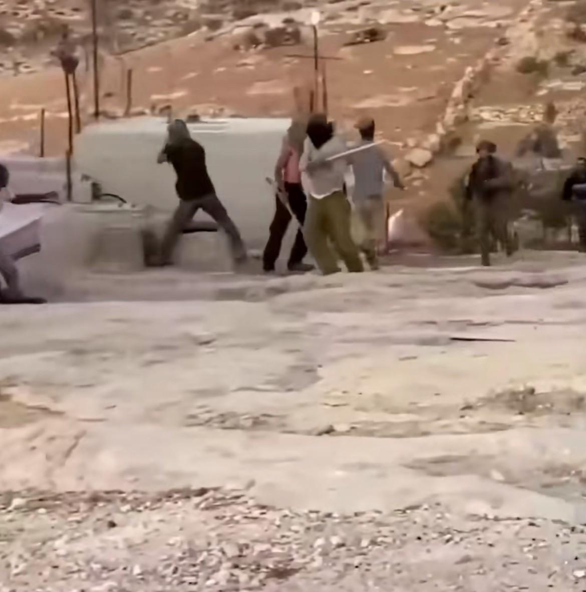 随后以畜的士兵跑过来,鸣枪警告巴勒斯坦人,最后让这些暴徒在侵占军的庇护下大摇大摆的离开了。 这也是以色列对巴勒斯坦土地的蚕食主要方式,通常是毁掉巴勒斯坦人赖以生存的经济作物,比如橄榄树。暴徒们隔三差五的上门挑衅,殴打,甚至杀害,烧房。目的就是将世代居住在这里的巴勒斯坦人逼走,然后进驻霸占。(所谓合法政府法塔赫对以色列人的暴行却视若无睹) 现在以色列人野蛮的方式和他们当初的恐怖组织伊尔贡如出一辙。