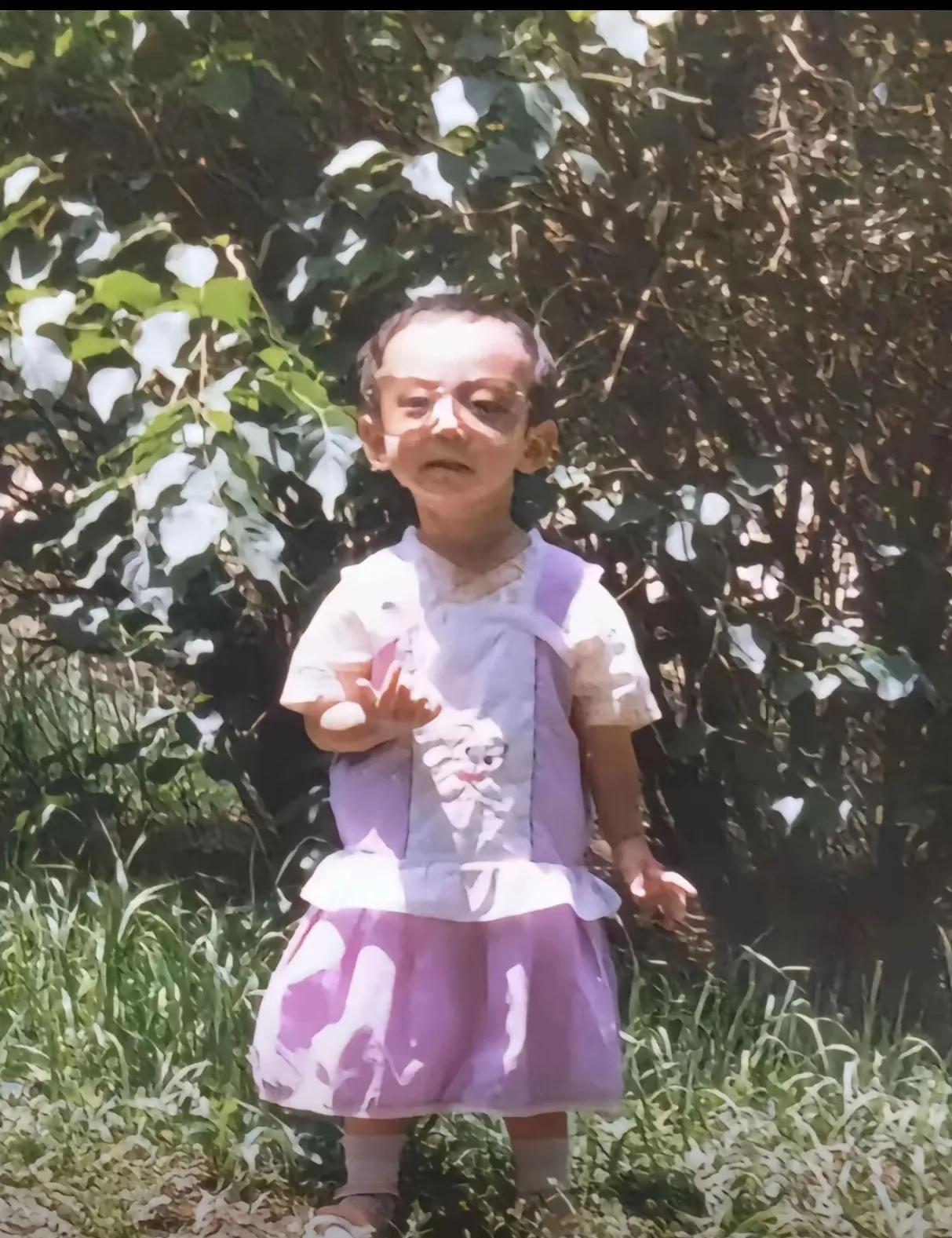 开始还以为是谁家小姑娘,这个穿着女孩子小粉裙的原来是张维伊。 小张维伊戴着有色镜