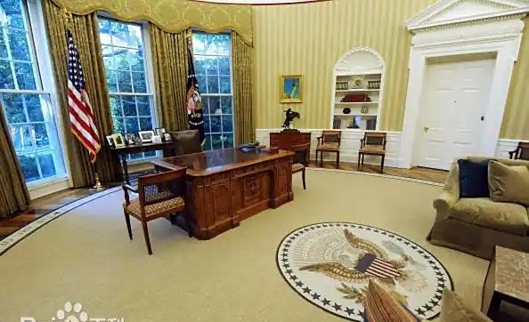 这里是白宫椭圆形办公室,这里是美国总统日常办公的地方,是白宫幕僚向特朗普汇报请示