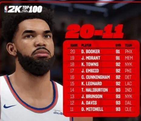 NBA2K官方今日公布了2K26能力值排名11-20的球员,具体如下: 能力值93:米切尔、浓眉哥、布伦森、哈利伯顿 能力值92:伦纳德、坎宁安、恩比德、唐斯 能力值91:莫兰特、布克 排名11-20球员名单出炉,意味着詹姆斯、杜兰特、库里铁定是联盟前十球员了。詹杜库最大的40岁,最小的36岁,依然屹立不倒,不给后辈机会啊。 恩比德两年前还是MVP球员,最强中锋,如今已经沦落到和唐斯一个水平了。恩比德昙花一现,陨落的太快了。 值得一提的是,哈利伯顿此前被认为是最被高估的球星,今年季后赛的神奇表现征服了众人,已经非常接近联盟前10了。哈利伯顿只用了一年季后赛就打服了所有人,联盟无出其右啊。#头号创作者激励计划#