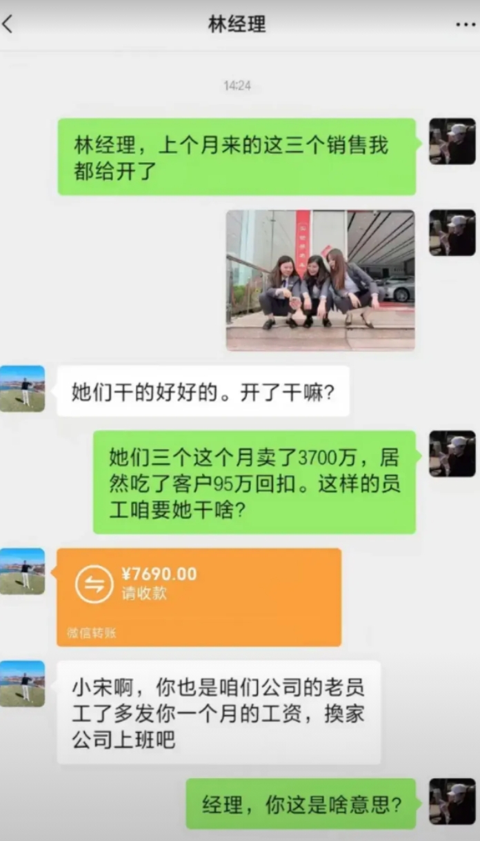 平均月销售额1200万的销售你说开?算15%的毛利,一个月能给公司带来180万的利润你说开就开?人家拿回扣也是赚钱啊!你又不是政府机构!