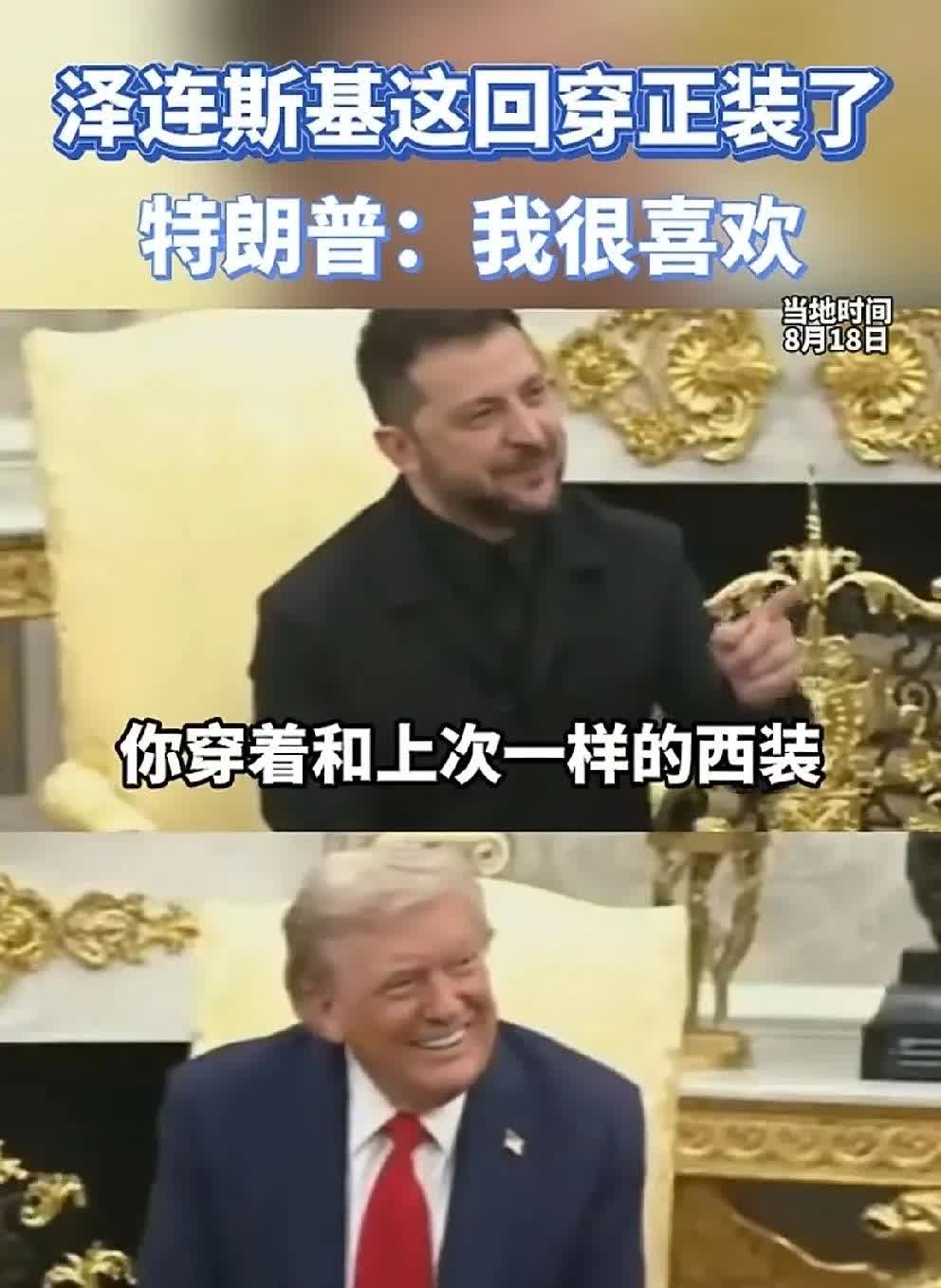 哪壶不开提哪壶。美国记者第一个问题是问泽连斯基这次来怎么换了衣服。特朗普在旁边说