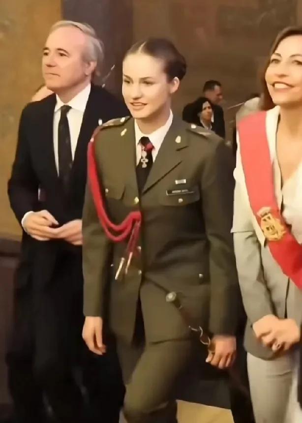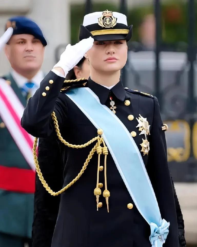 莱昂诺尔公主真是越来越有女王范儿了!参军后变化超大,梳起发髻穿上军装,干练又帅气。她从2023年开始接受三年军事训练,为将来成为三军总司令做准备。这位西班牙王位唯一继承人,不仅让王室形象焕然一新,还成了最受欢迎的王室成员,真是西班牙的骄傲#西班牙公主#西班牙王室#莱昂诺尔公主#军装#女性