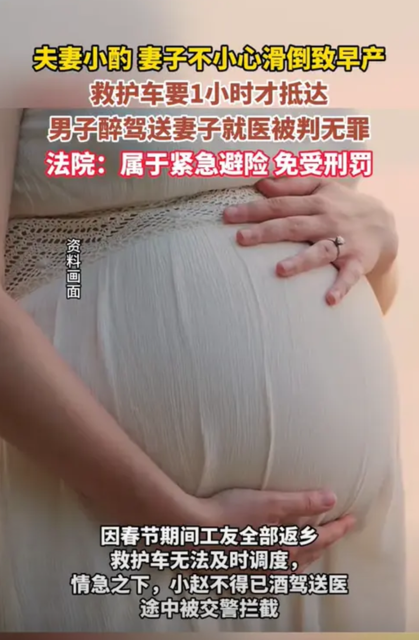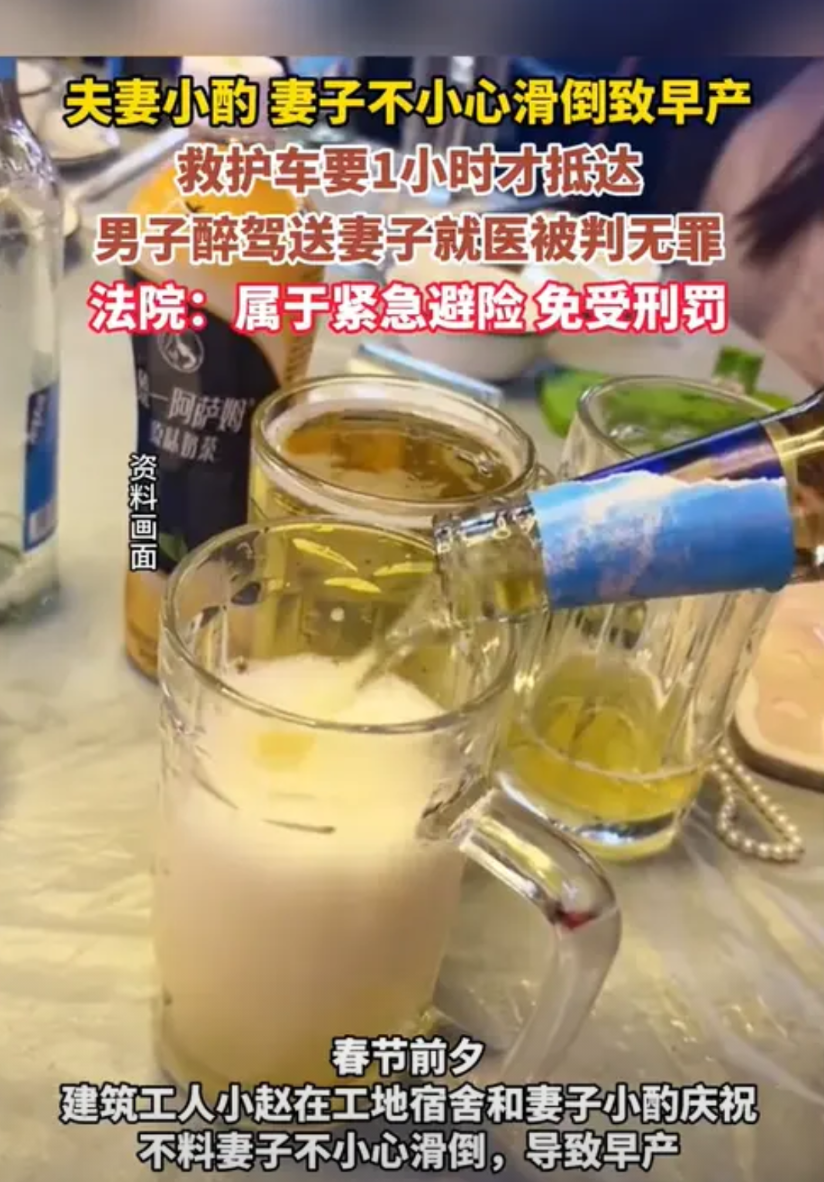 据杭州网8月19日报道,一男子与怀孕的妻子在宿舍内喝酒庆祝,谁知妻子拿菜时不慎滑倒,下体大量出血。男子急急忙忙开车送妻子去医院,但在途中被查酒驾的交警拦下。后交警调配了救护车将男子的妻子送医救治,最终母子平安,而男子因醉驾被提起了公诉。法院判了!