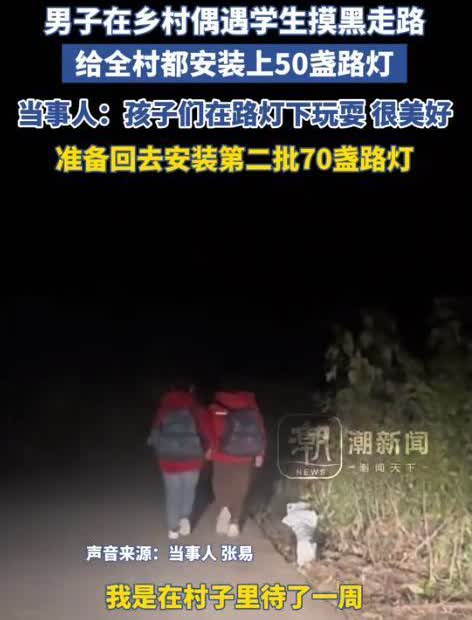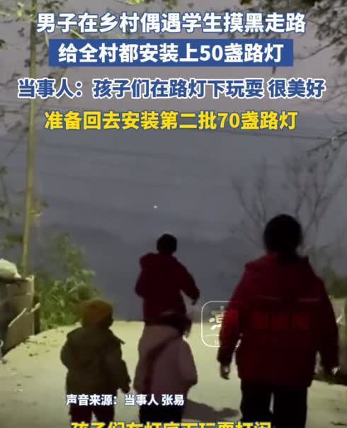 重庆石柱县,男子开车途径重庆市石柱县的一个村庄时,发现了两名小学生正摸着黑去上学,看到这一幕后,男子就很不舒服,觉得孩子年纪又小,天还这么黑,太容易在上学的路上出现什么意外。 早上五点半,天还没亮堂,重庆石柱县那边一个挺偏的小村子里还是黑漆漆的。两个小学生拿着手电筒,走在没有灯的山路上,走得特别小心,生怕摔了。 这时候,有个开车路过的大哥看到了,心里咯噔一下。这么小的孩子,天又黑,山路还不好走,一不小心就可能摔倒。他赶紧停了车,过去问问咋回事。孩子们说,他们每天上学都得走快一个小时,因为村里没有路灯,只能靠手电筒照亮。大哥又去村里问了问,才知道村里条件不好,装不上路灯,大家晚上出门都是摸黑,都习惯了。 大哥听了心里挺不是滋味。他决定留下来,帮村里解决这个问题。他在村里住了下来,忙着联系买灯的人、安排人安装,还亲自看着装灯。才一个星期,村里就装上了50盏路灯。当第一盏灯亮起来的时候,村民们都出来了,围着路灯看,脸上都是惊讶和高兴。孩子们在灯光下跑来跑去,老人们坐在椅子上聊天,整个村子好像都亮堂了起来,有了希望。大哥站在旁边,看着这一切,眼里有点泛红。他啥也没说,就是默默地站着,心里特别踏实。路灯一亮,把山路照得通明,也让村民们的日子亮堂了起来。那个男子悄悄地走了,可他把一份长久的温暖留在了村里。