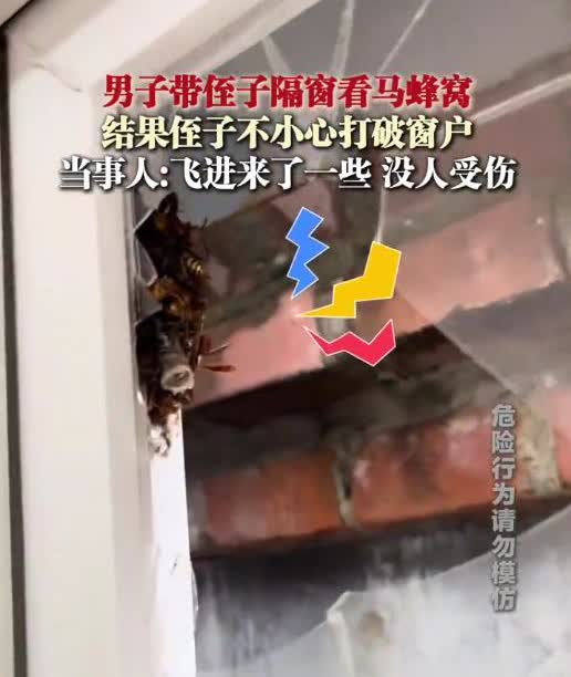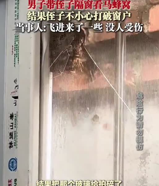 太惊险了!北京,男子带侄子隔窗看马蜂窝,不料,小孩子好奇,用衣架去敲玻璃,一下竟然不小心打破窗户,虽然一些马蜂费劲物理,但幸好没有人受伤,可想到当时的场景,男子还是后怕不已 男子介绍,当天8岁的侄子来家里,看到窗户外的马蜂窝,就觉得很好奇,他也没当回事,就跟着侄子一起隔窗看马蜂窝 本来只是隔着窗户指指点点,谁想到孩子一调皮,抄起衣架就朝玻璃敲,啪嚓一声,窗户连带纱窗全碎了,马蜂瞬间涌进来好几只,大人孩子吓得扭头就跑。幸好人都没事,但事后回想,谁都一身冷汗 两个人连忙就跑出屋,好在没有伤到人,后来他捣掉了外面的马蜂窝,但很快马蜂又重新回来筑巢了 不得不说,小孩子面对陌生事物的时候,胆子往往比大人想象的要大,他们不知道危险在哪,反而觉得是游戏。大人要是掉以轻心,很可能就出意外,好在最后是虚惊一场 说起来,马蜂这种昆虫其实有很强的领地意识,而且马蜂有归巢习性,如果只是简单捅掉而没有清理残留气味或者封锁筑巢点,它们很可能再次回来 最好还是联系消防或专业防治机构处理,自己动手风险太高
