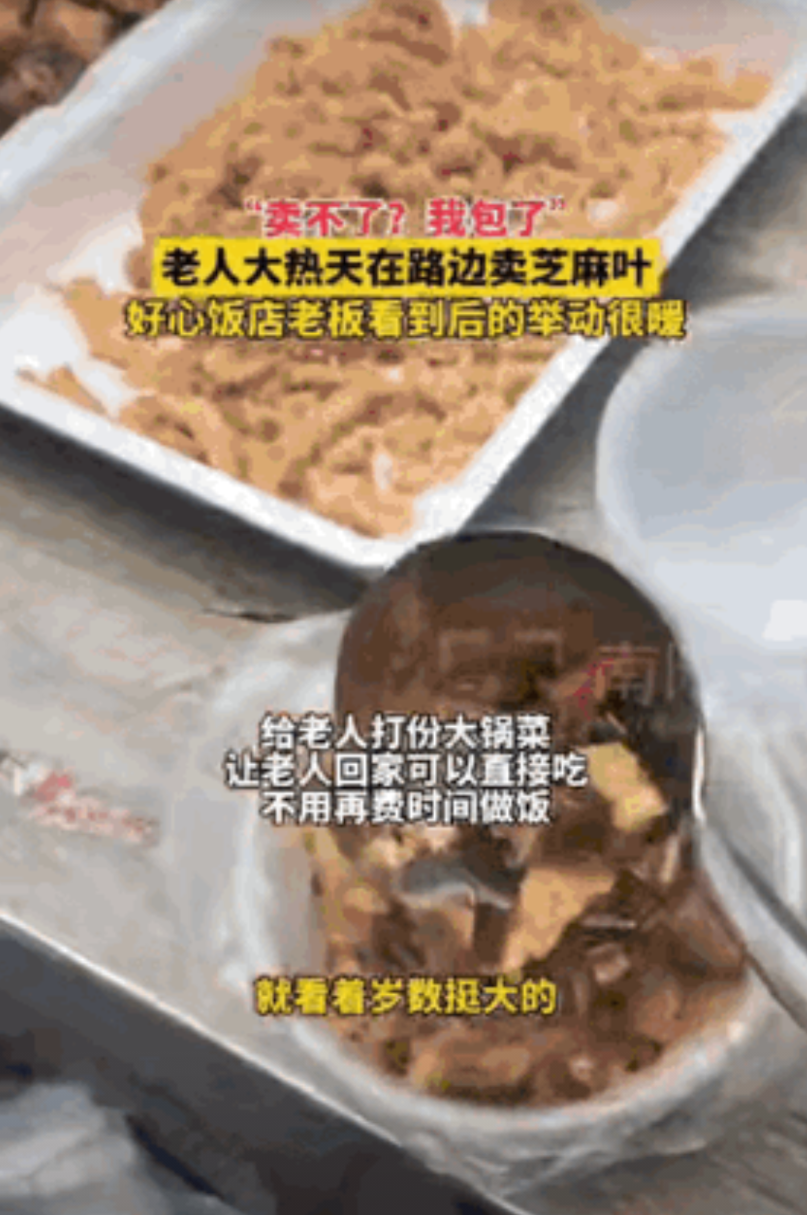 老人自己感觉有些不好意思,但尹老板挥了挥手,示意老人带走吃就行。自从,尹老板把包圆了阿姨的芝麻叶。后来连续两三天都没见到老人,后来老人再来,尹老板问她:“怎么不见您来我这边门口卖了。”老人表示来了怕给他添麻烦。