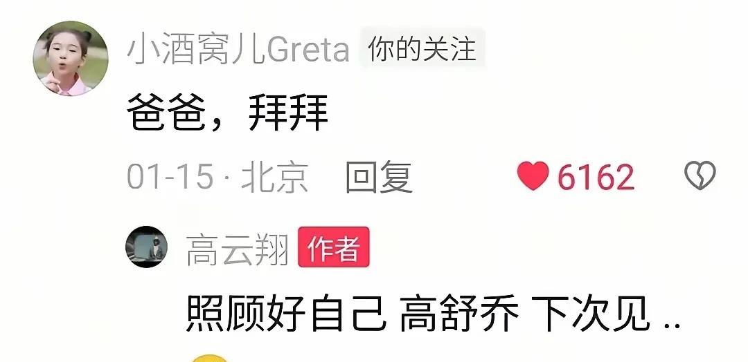高云翔虽然跟董璇离婚了,女儿跟着女方生活,但是父女俩的感情没有变,对话也是非常温