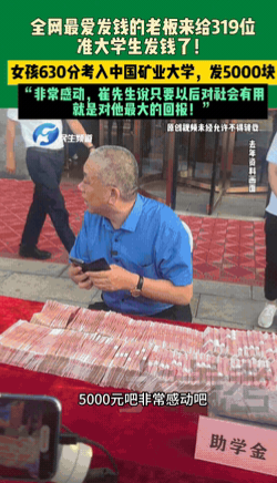 简直是神仙老板!”河南,一老板为鼓励学生上学,主动拿出110万,给319名准大学生发钱!其中一位女生因630分考入中国矿业大学,一下子就得到了5000元资助!当她对老板表示感谢时,没想到老板的话让人感到敬佩!网友:这样的老板不发财都难! 8月21日,著名企业家崔培军先生为当地319名即将步入大学的学子准备了特别的礼物,那就是每人一份助学金,这次他总共拿出110万元,其中90多万元直接资助困难学生,其余资金将用于奖励优秀教师。 这位企业家的善举已经持续了二十多个年头,从最初帮助一个交不起学费的女生开始,到现在累计资助4400多名大学生,总金额超过3400万元,他始终如一地支持着教育事业,这么多年来,每当开学季来临,他总会准时出现,为孩子们送上温暖和鼓励。 崔培军先生自己年轻时因为家境困难,很早就辍学打工,他卖过小商品,干过重体力活,深知没有文化的难处。 正是这样的经历,让他特别理解贫困学子的处境,如今他虽然事业有成,但生活依然简朴,把省下来的钱都用在了帮助他人身上。 除了资助学生,他还为员工考虑得很周到,夏天给农忙假,冬天发取暖费,过年时还会准备丰厚的年终奖,这些举动让他赢得了员工们的爱戴,也让大家更加敬重他的为人。 更难能可贵的是,他从不要求受助学生回报什么,每次发放助学金时,他总是说:“希望你们好好学习,将来做个对社会有用的人。”这句话看似简单,却饱含着一位长者对年轻一代最真挚的期盼。 现在,当地已经形成了重视教育、互帮互助的好风气,很多受过资助的学生毕业后都选择回到家乡,用自己的方式回报这片养育他们的土地,这种正能量的传递,或许就是崔先生最希望看到的吧。 评论区聊聊,您身边是否也有这样默默奉献、热心公益的人呢?