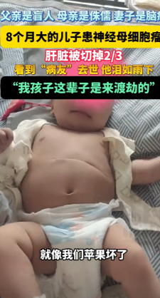 厄运专找苦命人!”江西南昌,一男子的父亲是盲人,母亲是侏儒,妻子是脑瘫,而他自己也只有1.38米!可让人没想到的是,8个月大的儿子又患上了神经母细胞瘤!本以为男子会被现实压垮,没想到他硬是靠自己的努力,不仅建了3层楼,还在城里买了公寓! 南昌有个叫焦皇亮的汉子,日子过得比黄连还苦,他的父亲眼睛看不见,一辈子没怎么看清过世界,妈妈又是侏儒,行动比常人费劲不少。 而他自己也受侏儒症影响,身高只有1米38,站在人群里总显得格外矮小,虽然后来成了家,可娶的媳妇又患有脑瘫,生活里的大小事几乎都得靠他搭把手。 可以说焦皇亮就没享过几天顺心事,别人嫌累的活,他抢着干,别人觉得难的事,他咬牙扛,从帮人打零工到自己琢磨营生,他手上的茧子磨了一层又一层,就这么一点点攒下钱来。 先是在老家一块空地上,一砖一瓦亲手盖起了三层小楼,让爸妈和媳妇有了安稳住处,后来又咬牙在南昌城里买了套公寓,想着给家里人多一份保障。 本以为一家人凑在一起,再难也能慢慢过,可老天偏不遂人愿,他刚满8个月的儿子,突然被查出得了神经母细胞瘤。 神经母细胞瘤这病,对小娃娃来说太遭罪,孩子才8个月大,还不会说话,就开始遭化疗的罪,后来连肝脏都切掉了三分之二。 焦皇亮在医院陪着,看着儿子难受得哭,他心里像被刀割一样,有时候在病房外碰到其他病友家长,听说谁家孩子没挺过去,他也会忍不住掉眼泪,心里一遍遍念叨“我娃这辈子是来渡劫的,肯定能熬过去”。 他一边要守着医院照顾儿子,一边还得惦记家里的爸妈和媳妇,只能趁着间隙往家打电话,忙得连好好吃顿饭、睡个觉都成了奢侈,可他从来没在家人面前说过一句累。 虽然他没什么惊天动地的本事,就是凭着一股不服输’的劲,在满是荆棘的路上硬生生蹚出了一条道,这份韧劲,比任何大道理都让人佩服。 大家不妨想想,要是咱们遇上这么多难事,能像他这样不低头、不放弃吗?