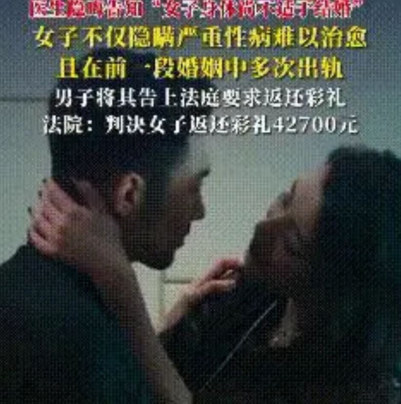 “又来找冤大头了?”山东一对准新人去做婚检,结果医生委婉地告诉男子,女子的身体有问题,不太适合结婚!谁知,随后男子发现女子有严重的脏病,很难得到治愈。更让他崩溃的是女子和前夫离婚的原因,竟是多次出轨他人!男子当即决定退婚,要求女方退还 68000 元彩礼和 5000 元医疗费。可女方不肯。谁也没料到,法院最终的判决会是这样的结果! 判决书下来了,白纸黑字。三十七岁的阿强,头一回结婚,就这么收了场。法院最后判阿花退四万两千七,这是把订婚宴的开销和她先还的七千块给刨掉了。 至于阿强因为后怕,自己花了快五千块做的预防检查,判决书上就四个字,不予支持。 信任这东西,怎么就塌了?这是从县医院那张薄薄的婚检单开始的。阿强自己什么事没有,阿花那张单子上却写着,暂不适宜结婚。 没头没尾的一句话,像根刺,瞬间扎进了阿强的心里。他开始往回想,好多以前没在意的事,一下子就对上了。 阿花身上那些不太明显的皮疹,俩人亲近时她下意识的躲闪,还有她抽屉里那个撕了标签的药瓶子,以前觉得没什么,现在看,全是线索。 阿强自己偷偷跑去医院问,又托关系到处打听,结果像个晴天霹雳。阿花有病,还是那种传染性极强的。 瞒得太深了。知情人后来才说,她年初那段婚史,就是因为婚内乱来才散的,她前夫都曾暗示过,这病来路不正。 这一切,都发生在九月份那场风光的订婚宴之后。那天,阿强当着所有亲戚朋友的面,把六万六的现金彩礼,外加两千招待费,亲手交到了阿花手上。 他快四十了,头一回尝到爱情的滋味,那笔钱不只是钱,是他后半辈子的指望和承诺。他以为的好日子刚开了个头,转眼就成了个天大的笑话。 感情被骗了不说,自己身体有没有事都不知道,这谁受得了。阿强彻底崩了。这婚,必须退。钱,一分不少地还回来,还得赔他医药费。 阿花那边倒也认了,说自己有病,但咬死了不是故意骗他,就觉得不严重。她嚷嚷着办酒席花了钱,自己名声也坏了,只肯退一部分彩礼,医药费更是一口回绝。话不投机,那就法庭上见吧。法庭查得很清楚,俩人没领证,也没住一块儿。 这彩礼本就是为了结婚给的,婚结不成了,理应得退。但订婚仪式确实花了钱,法官酌情扣掉一部分,也算公道。 至于阿强的医药费,他没法拿出铁证,证明自己的恐慌和阿花的隐瞒有直接的法律关系,这笔钱,就要不回来了。 钱算清了,人心里的窟窿谁来补?一张婚检报告,检的哪只是身体,分明是人心。说到底,婚姻这事,什么金钱仪式都得往后稍稍,最要紧的,还是那份不藏着掖着的坦白,和能把后背交给对方的踏实感。