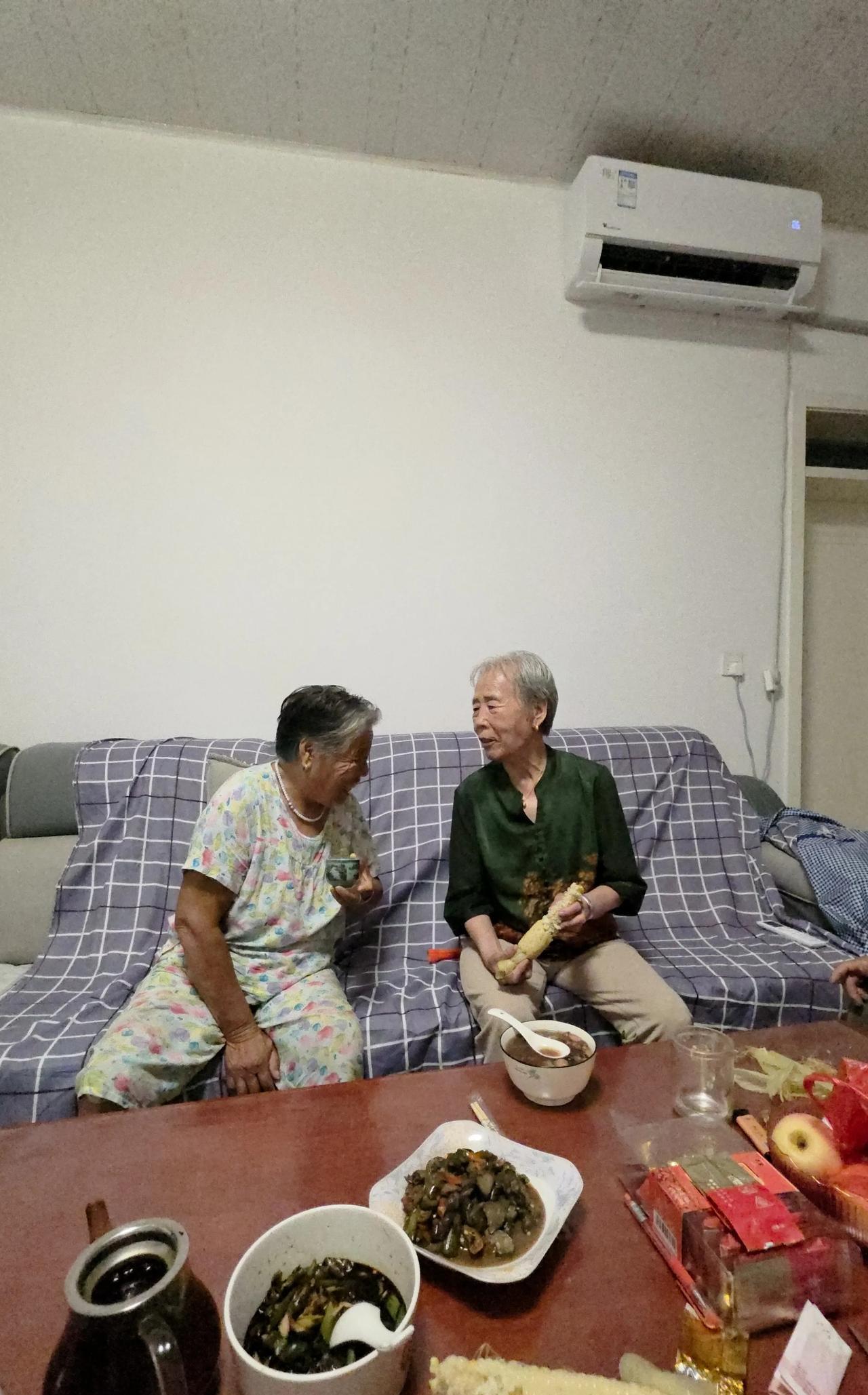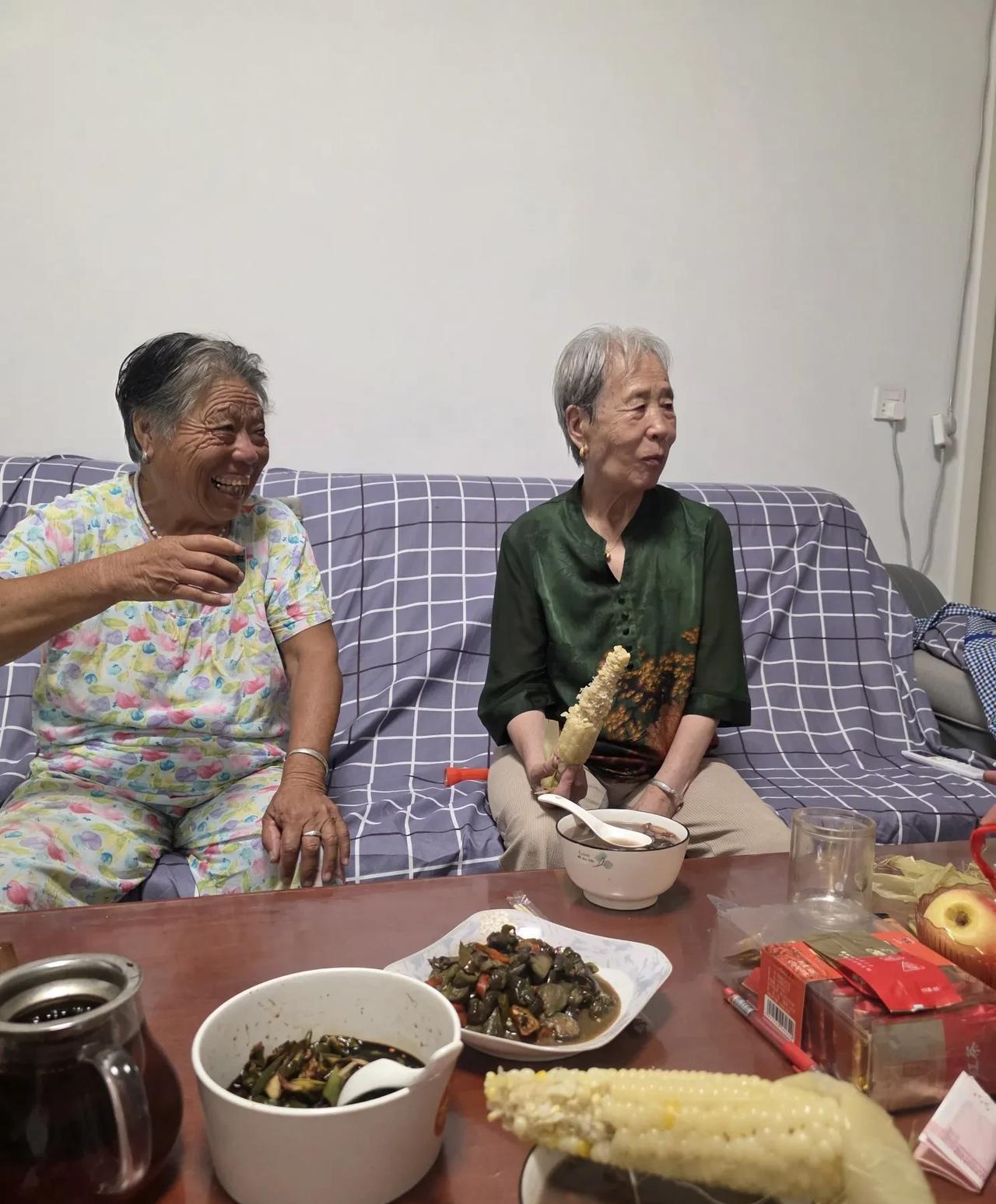 今天晚饭很简单,都是乡亲送来的,天很热,不想动烟火…… 玉米是北邻嫂子上午送来的,粥是村北婶子中午送来的。玉米很嫩,嫂子说她去玉米地专挑嫩的掰。这粥就就厉害了,有十几种食材——花生米,核桃仁,芸豆种,麦仁,玉米,红豆,薏米……婶子说她从上午八点一直熬到了十二点,真的很好喝。婶子说这叫“巧巧饭”,她未出嫁前就会做。 最近不是一般的热,今天就是三十七度,体感起码四十度以上,户外十分钟,上下一身汗,中午送粥的那个婶子,她不知道我家在哪里,推着自行车,带着粥,跑了半个村子。她不会骑自行车,推着当拐棍。她打听着来到我家时,我看到她的上衣都湿透了,当时就把我感动得不行。赶紧把她请到屋里凉快,然后泡上一壶茶,陪她聊聊天。 婶子送来很多粥,我和老娘一人一碗正喝着,北邻二嫂过来聊天,给她盛上一碗。还剩了两碗,今晚我和老娘一人一碗,我啃了一根玉米,老娘啃了一根。正吃着,已经吃过晚饭的本家二嫂来家聊天,她也啃了一根。 今晚没炒菜,中午我用虾酱炒的辣椒和茄子,故意多炒的,中午吃了一半,晚上热了另一半,但是我和老娘今晚都没吃菜。啃玉米,喝粥,不想吃菜。