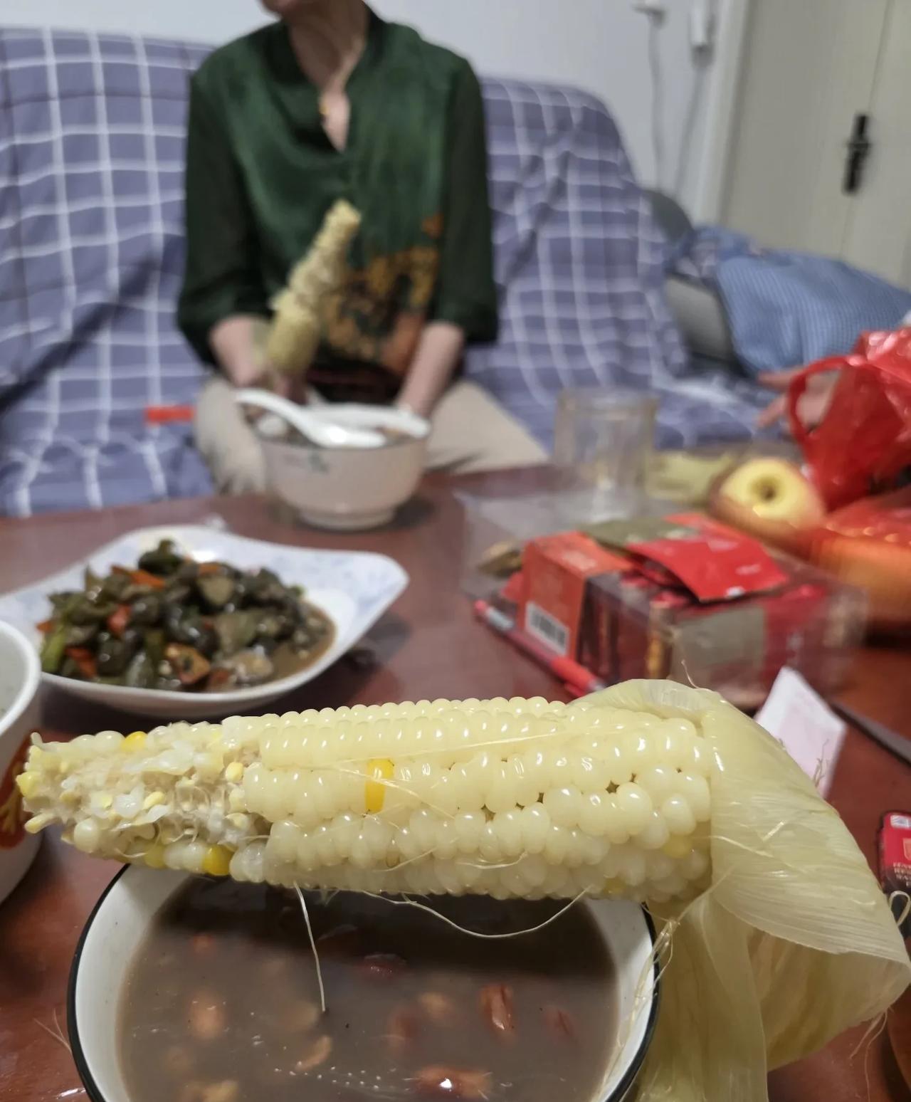 今天晚饭很简单,都是乡亲送来的,天很热,不想动烟火…… 玉米是北邻嫂子上午送来的