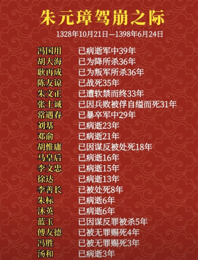 朱元璋武将能打的基本上都砍完了。要是留几个朱允炆也不至于这么快就被朱老四拿下