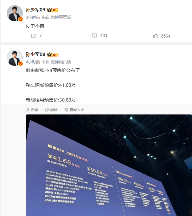 今天深夜,孙少军通过渠道打听到了蔚来ES8最新的订单汇总进展!有用户打开App,一会儿就有40多人推荐下订单!