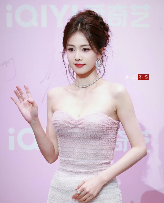 难怪她被其他女星忌惮,长的比赵丽颖甜美,比刘诗诗清新,身材还比杨幂好,腿比杨幂还细,皮肤比范冰冰还白,难怪能从平面模特变成一线女明星,这粉色抹胸礼服一穿,甜美可爱,还好她不学迪丽热巴到处捂,也没手捂,两只手忙着提大裙摆了。