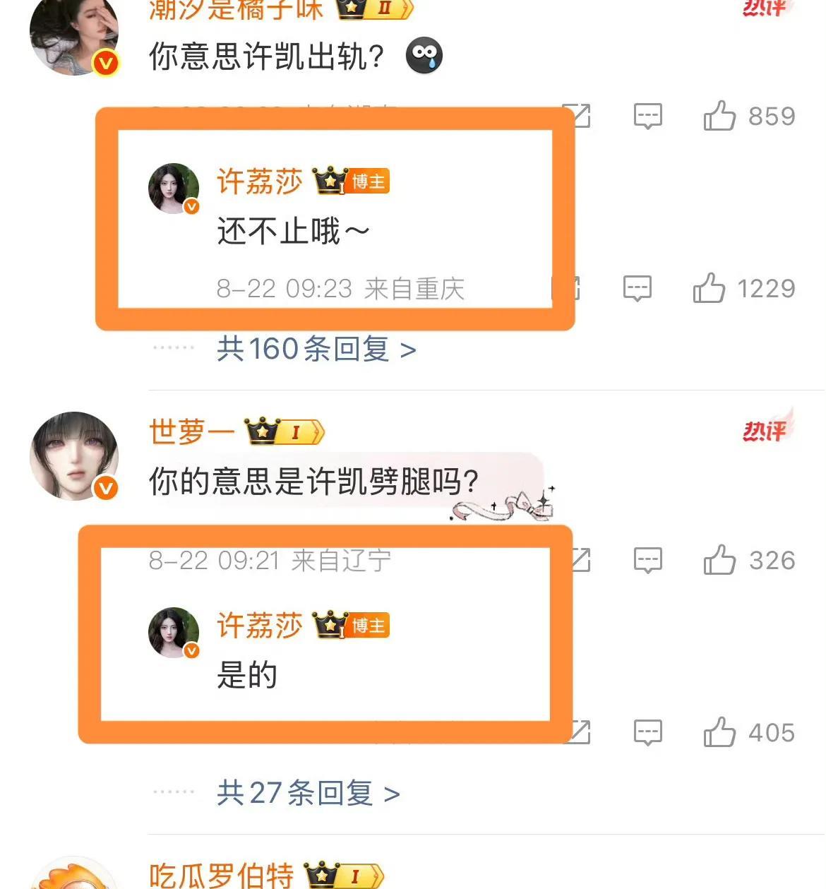 大周五的,许凯的前女友来爆瓜了哈哈哈,估计这个周末要忙了,虽然于正说是假的,但是人家前女友都晒出了许凯的私人照片,说明这个女的说的是真的。 我看前女友一直很刚,十几分钟更新一条博文,估计许凯和于正现在很急吧,毕竟如果许凯塌方了,于正也受损失吧,网友说,死丫头终于也有报应了[呲牙][呲牙]