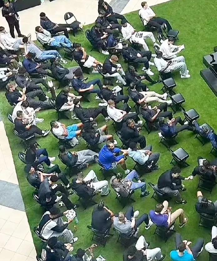 杨瀚森入职培训,座位位置妥妥的中国“坏学生”绝佳宝座! 杨瀚森已经回到了美国,近日正在参加NBA的新秀培训,和国内入职或者学生开学典礼差不多,而杨瀚森的作为那更是中国“坏学生”的绝佳宝座!你们找找杨瀚森坐在哪了? 杨瀚森参加完这个培训,接下来就是开拓者的季前赛,希望杨瀚森能比夏季联赛更进一步,毕竟季前赛有些主力会上,期待吧! 通过一段期间媒体的透露,杨瀚森的新秀赛季估计每场比赛会有10分钟左右的上场时间,真心期待杨瀚森在NBA的表现!