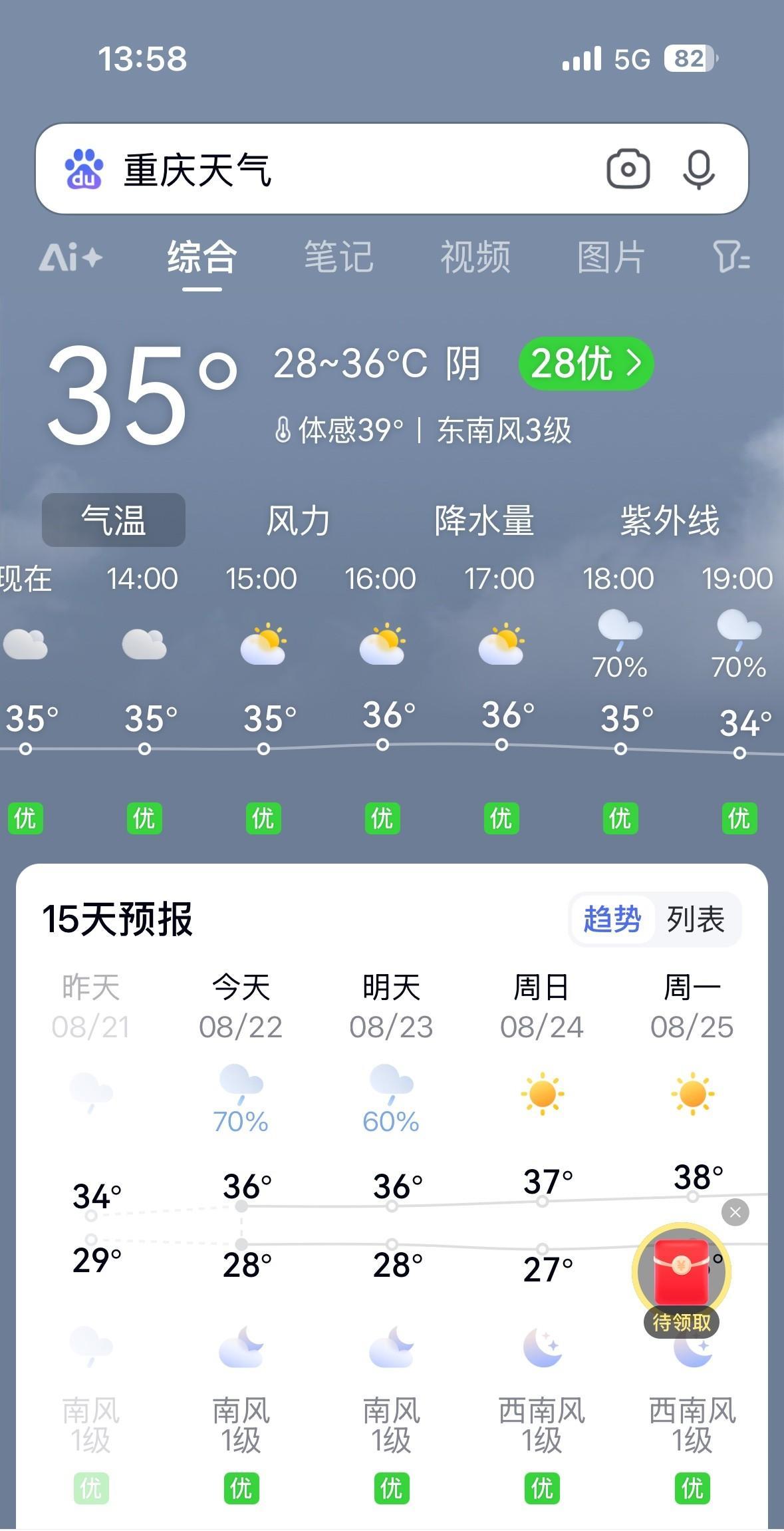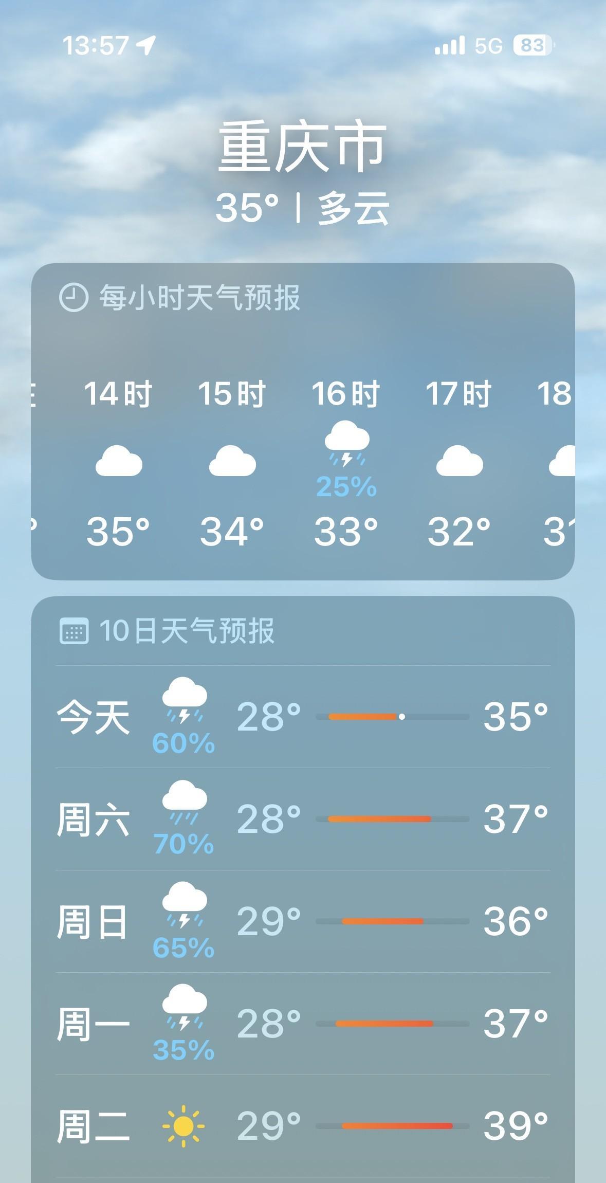 哎哟!今天下午,重庆主城区会电闪雷鸣吗?8月22日,星期五下午2点左右,这蓝天白