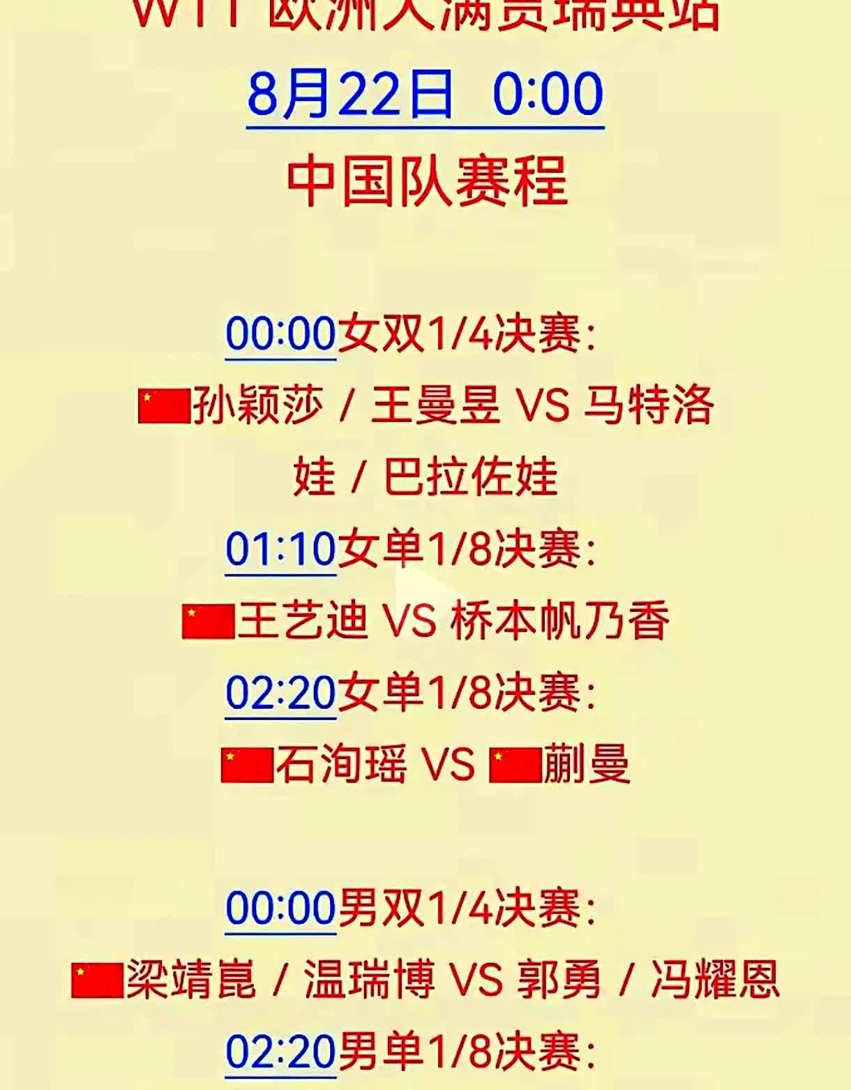 乒乓球22日赛程表来了! 瑞典大满贯赛程进入倒计时,喜欢乒乓球的老铁们快快收藏