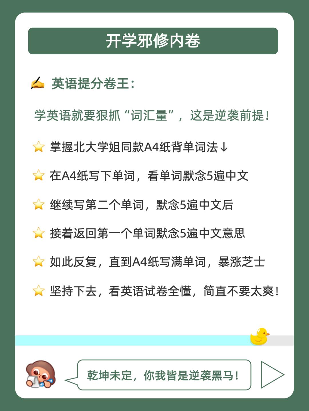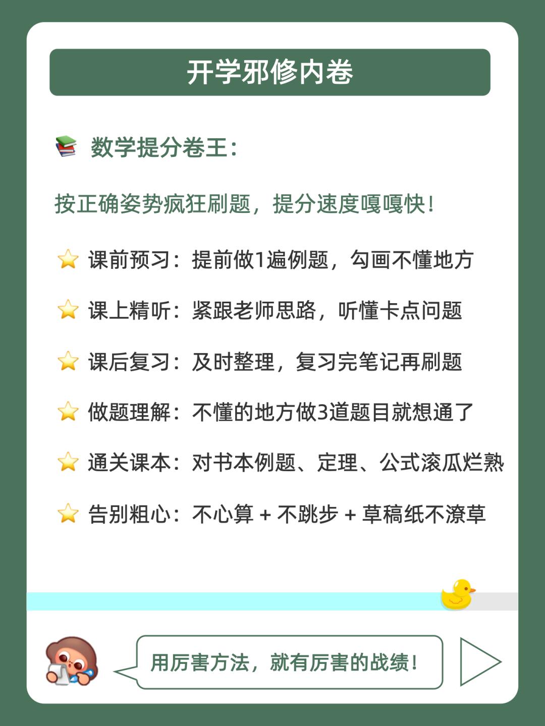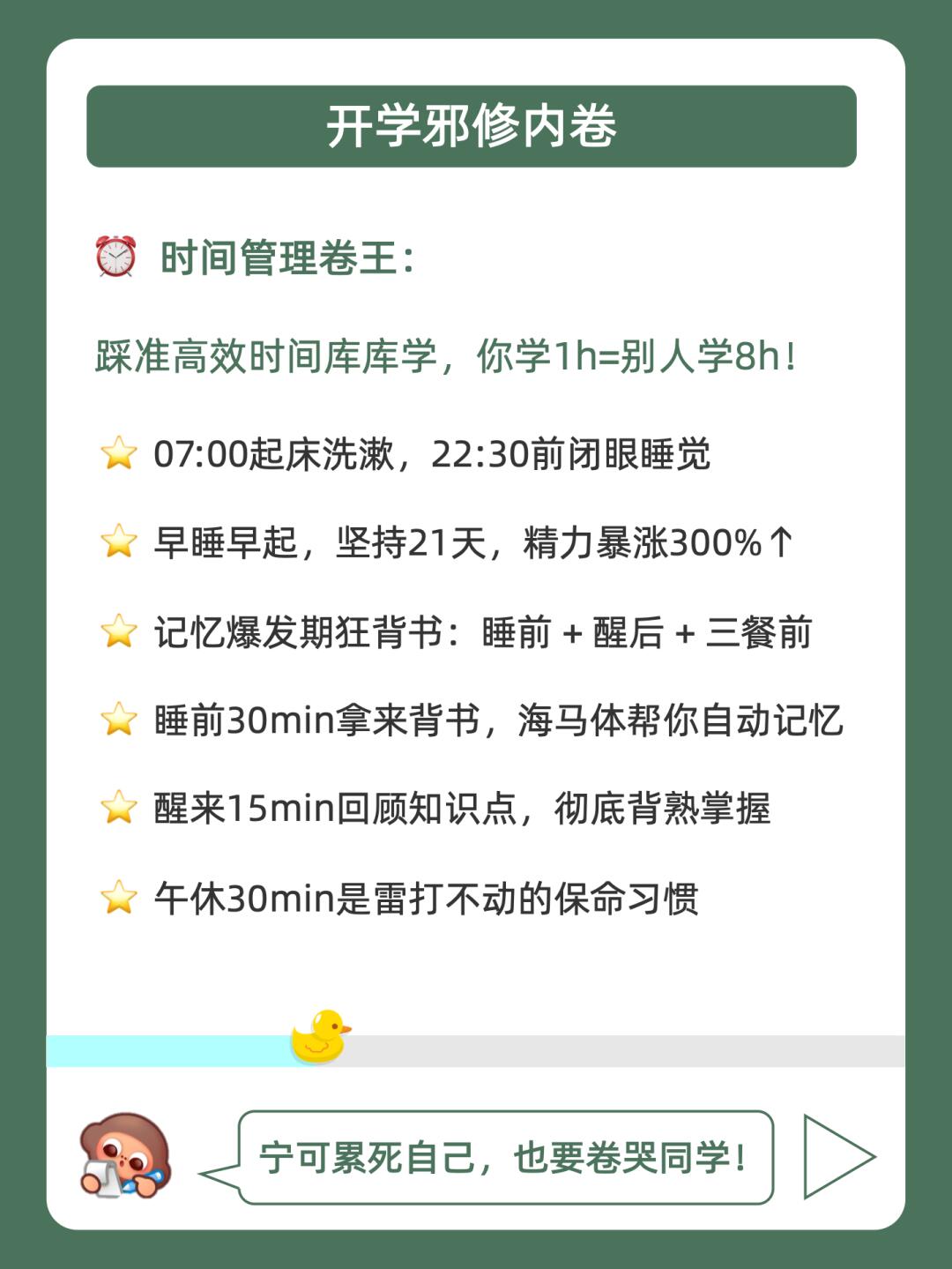 [赞R]学习摆烂不用怕,鸭鸭带你做卷王❗️ · [哇R]拿下这篇暑假邪修计划表,偷偷修炼惊艳所有人!🚀 . [偷笑R]赶紧学起来,这可是学霸间不轻易透露的秘密❗ . 🐣我是鸭鸭学长,持续分享更多学霸同款学习法,陪宝子们学习开窍,考试开挂!💯
