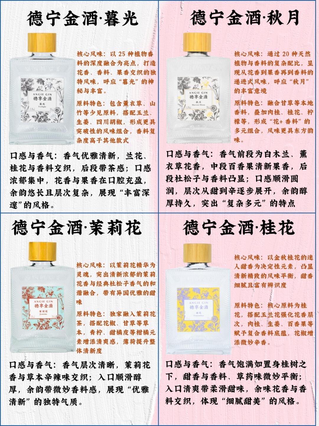 ⭐用花卉酿金酒,取材中国特色的水仙,茉莉,金桂等,罕见的酿酒风格,打造属于东方味觉嗅觉体验
