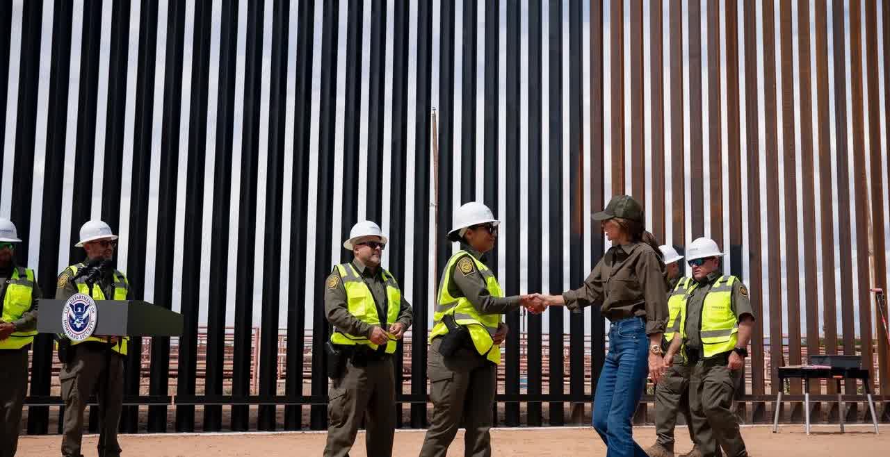 部长刷漆。美国国土安全部长诺姆再视察美墨边境的隔离墙,这墙不但高不可攀,而且缝隙很窄,小孩都钻不过来。 更有意思的是,诺姆要求刷上黑漆,以便吸收热能,提高温度,一摸就烫手。诺姆还亲自刷漆,这是铁了心要把移民拒之门外