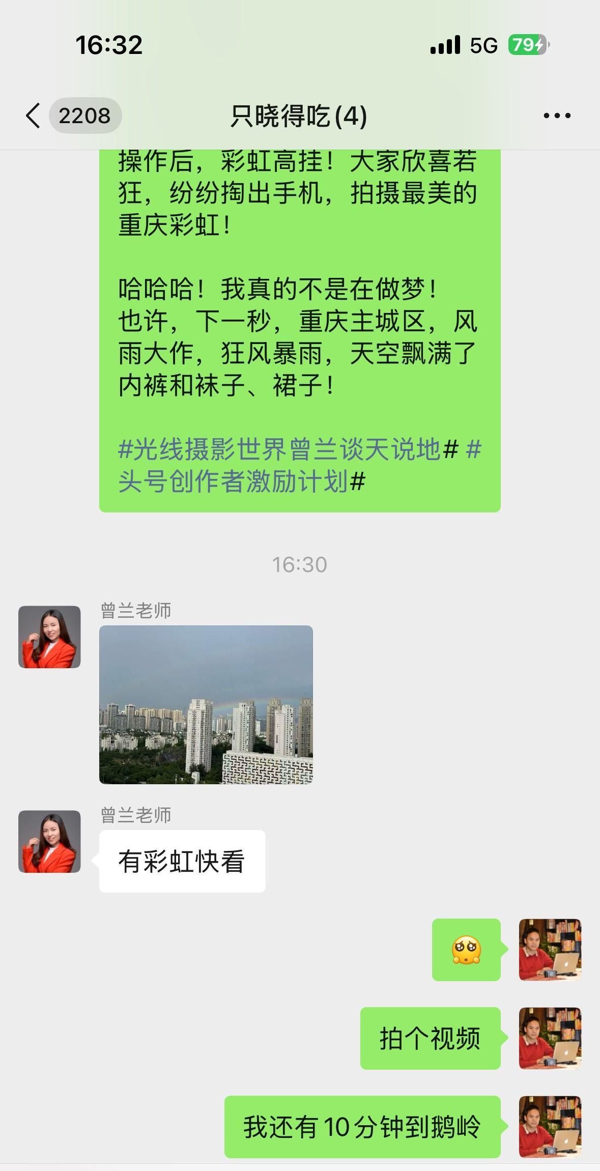 8月22日下午4点半左右,重庆主城区真的下大雨出彩虹啦!啊哈哈,可惜此时此刻我在地铁一号线的地下啊! 不晓得,再过十分钟,我能不能在鹅岭公园看到大雨闪电和彩虹呢?#光线摄影世界曾兰谈天说地# #头号创作者激励计划#