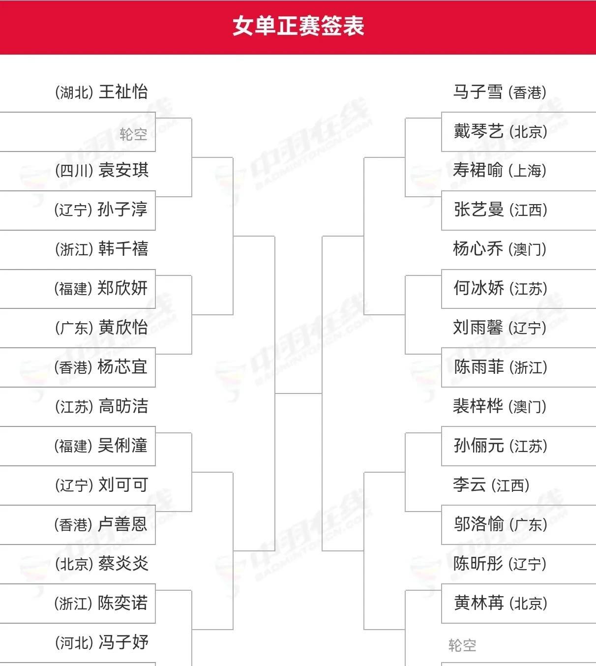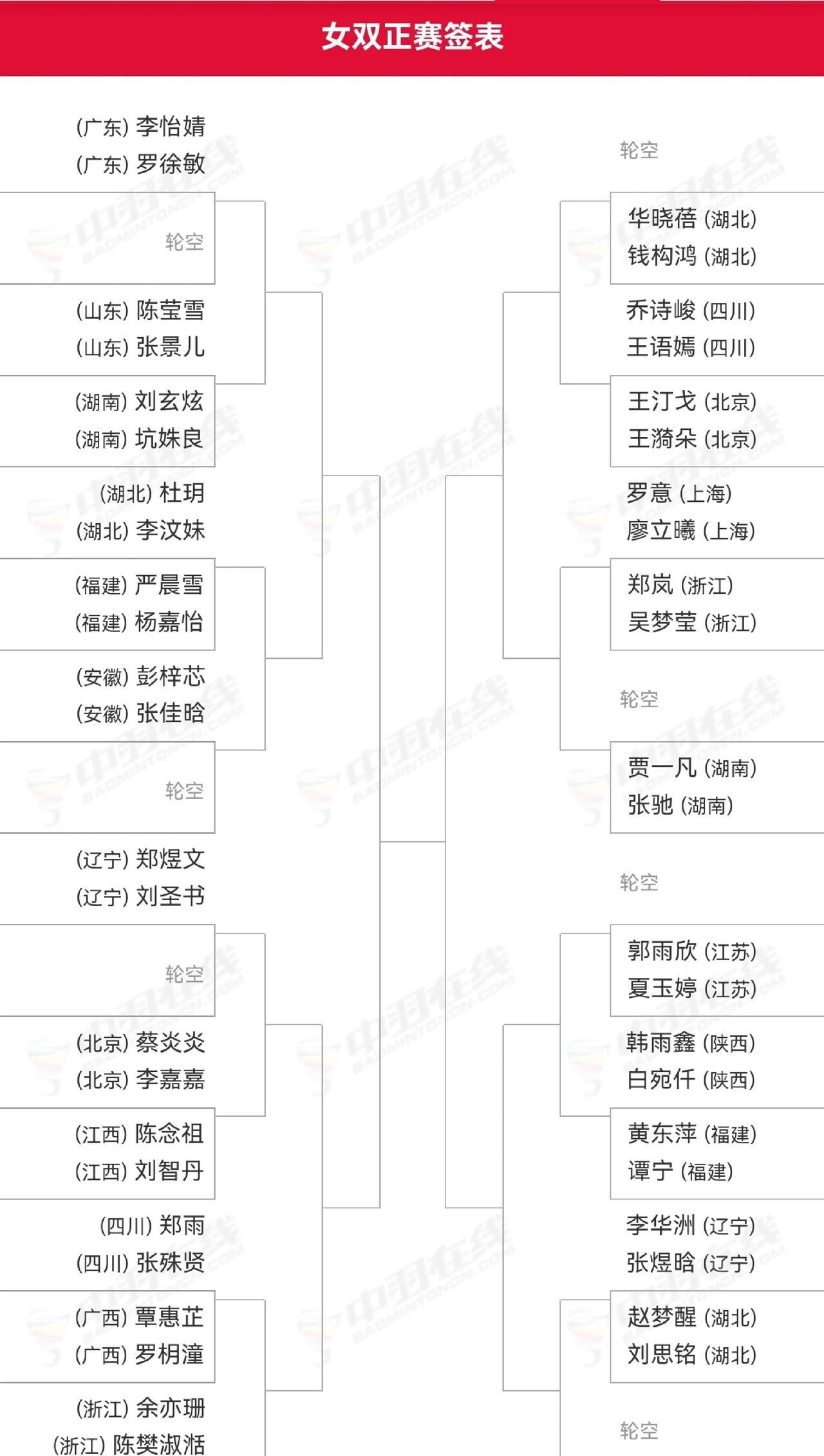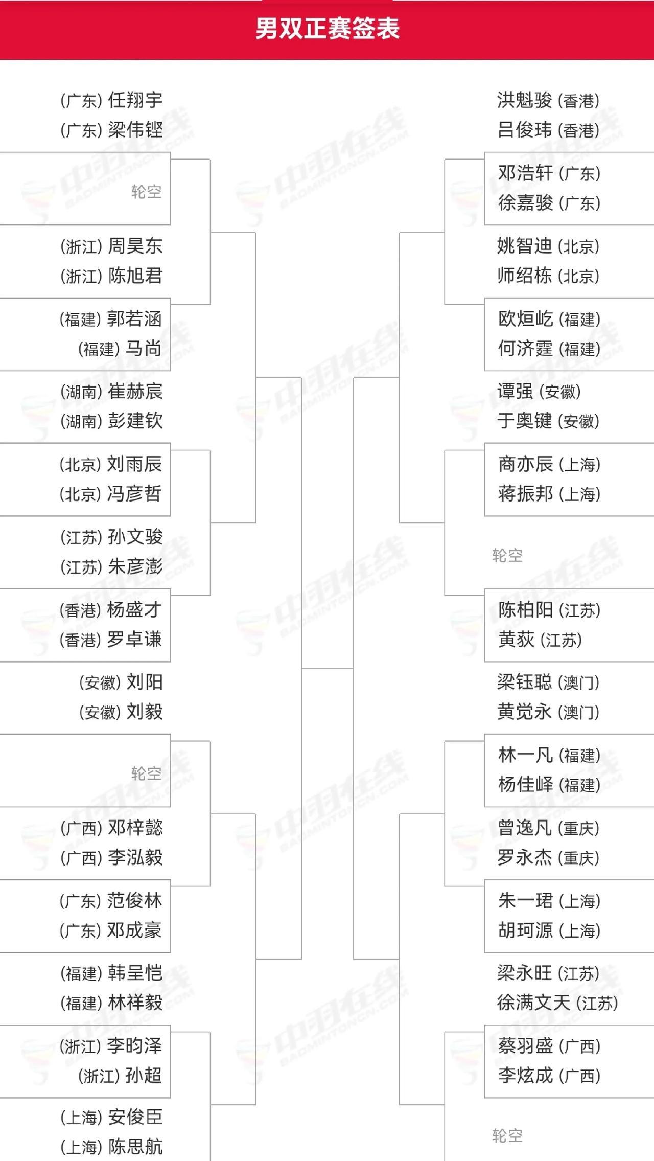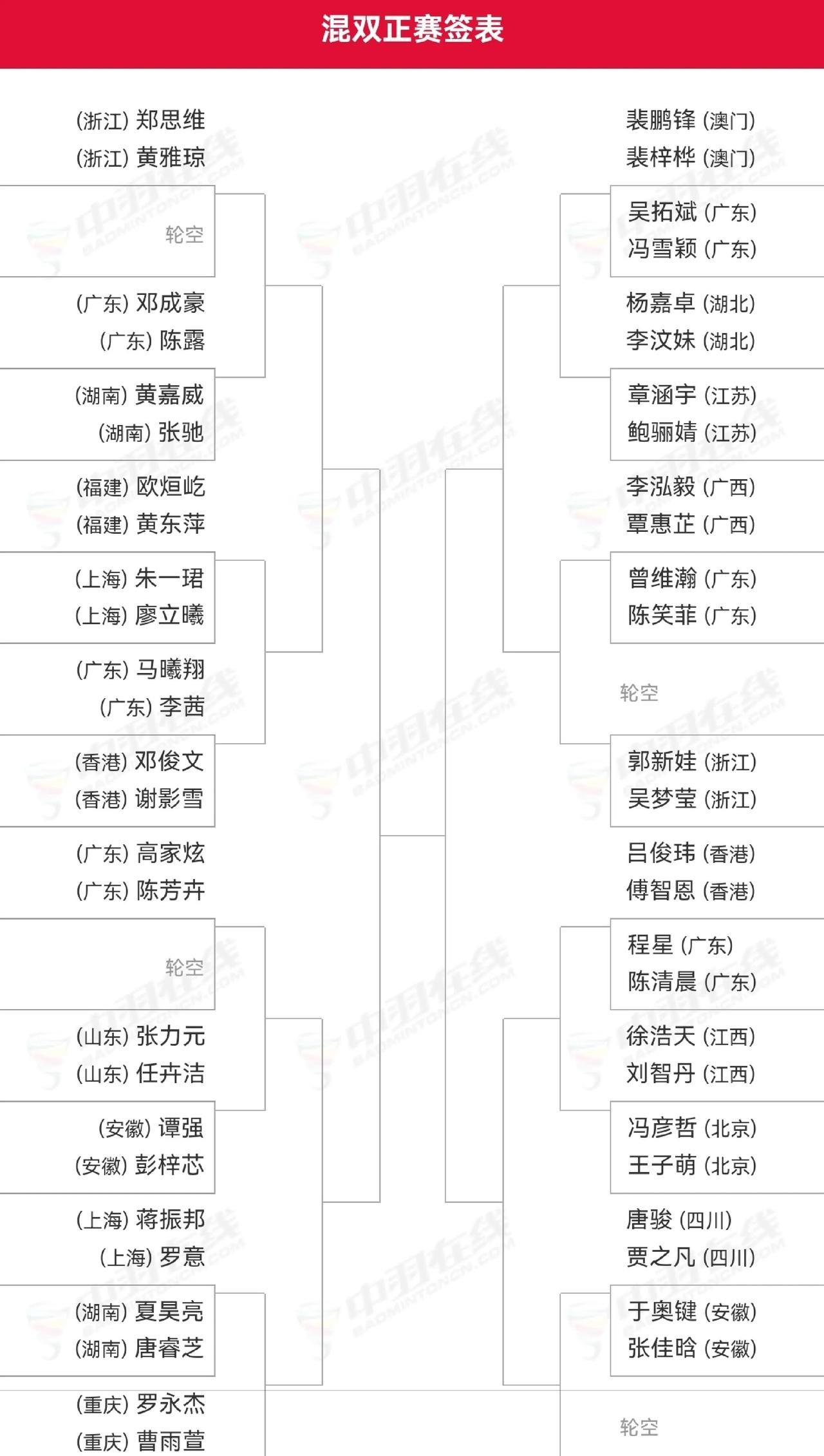 2025年第十五届全国运动会羽毛球赛单项资格赛收官,各单项对阵出炉,石宇奇、陈雨