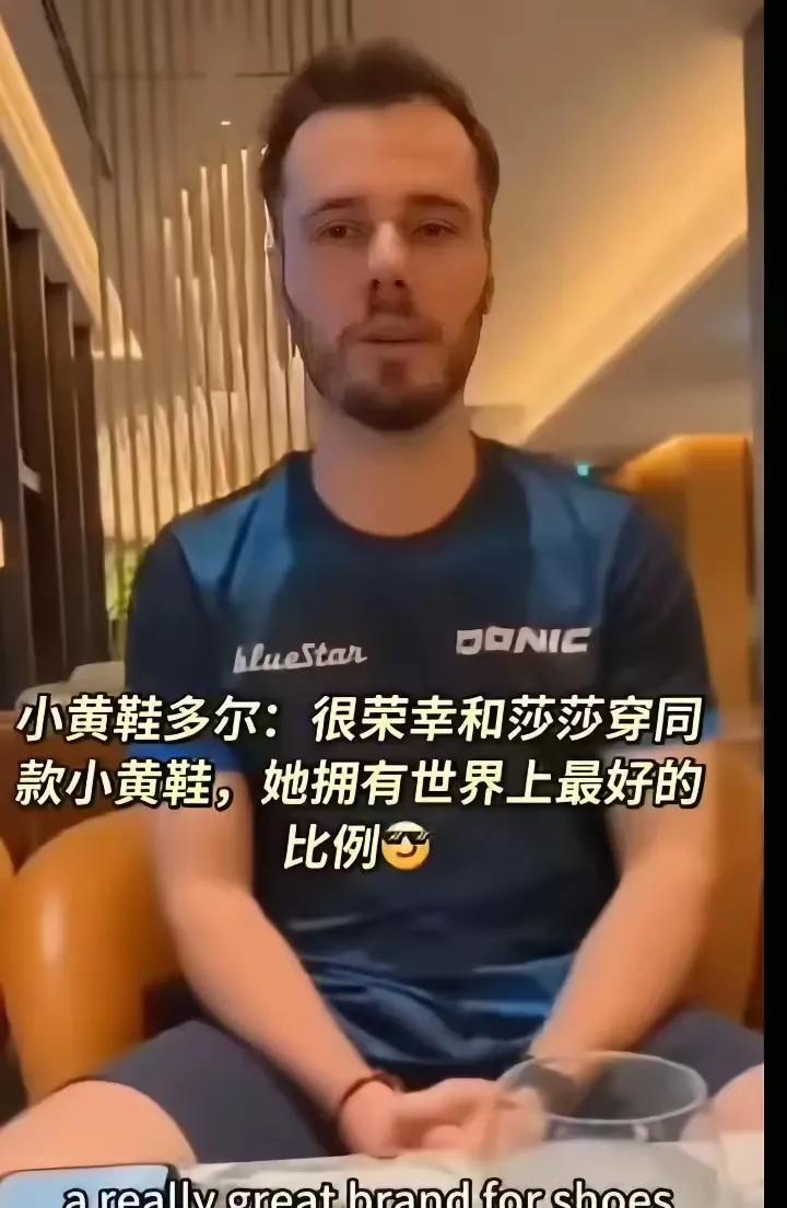 我说这是哪个显眼包举个这么可爱的孙颖莎怎么还那么眼熟呢?多尔不过你小心到北京王楚钦非请你喝豆汁。 这家伙就跟莎莎穿同款小黄鞋,比赛在楚钦面前蹦老高的,场上给莎莎捡球的,前段时间还特意在社交软件上夸赞莎莎身材比例好。去年的成都混团这家伙一系列显眼包小动作没少挨王楚钦白眼,让王楚钦采访直言要“要发球发死他”的那个人,他又到瑞典比赛现场给莎莎加油了!