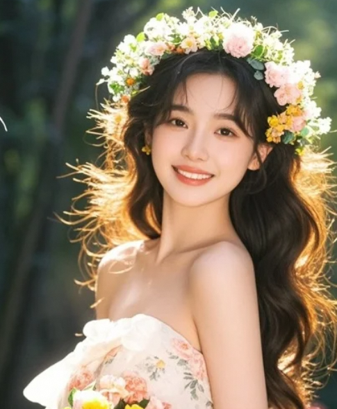 山林中的精灵:身穿露肩花朵裙,头戴花环,她是自然的女儿