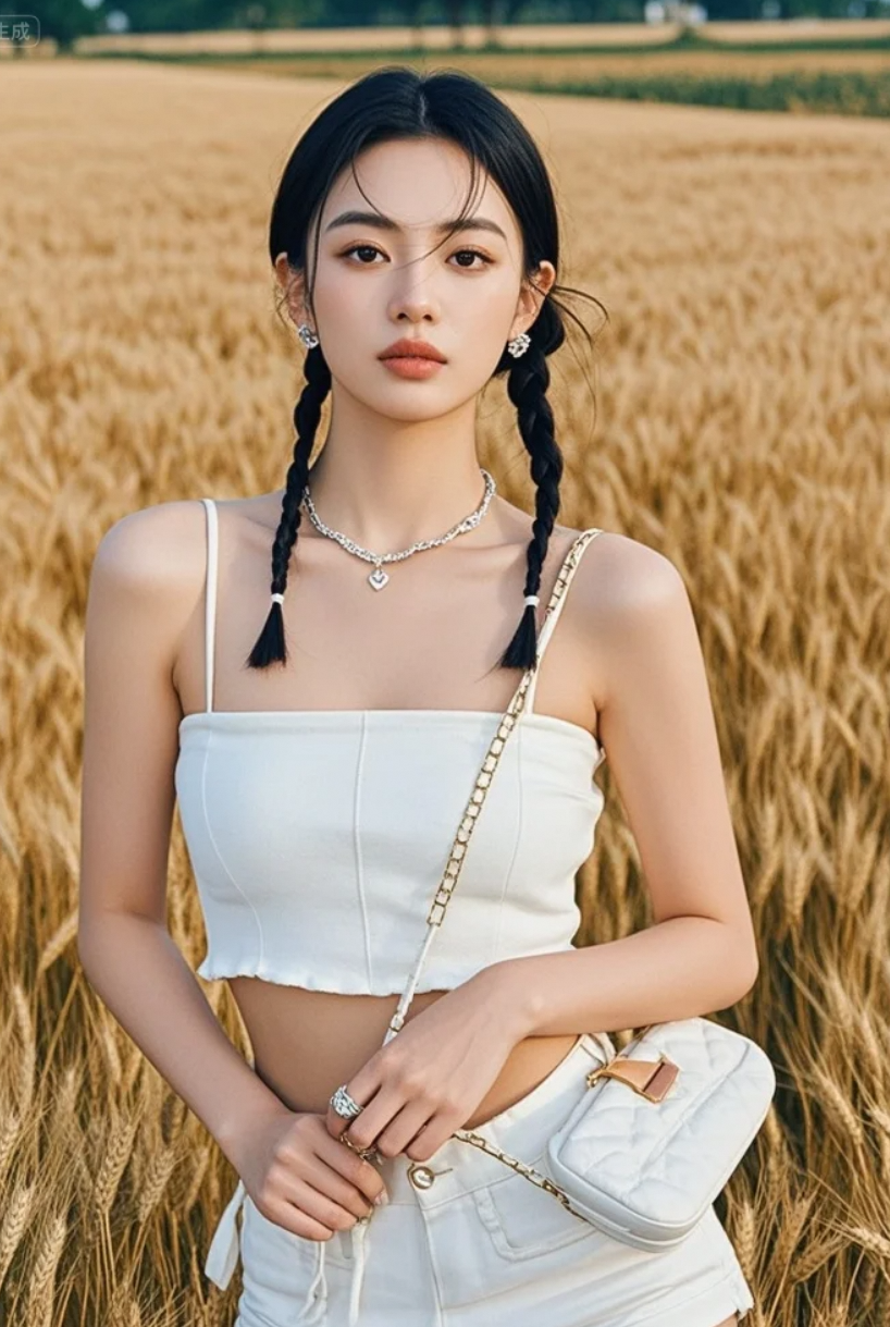风起麦田,发丝与麦穗共舞,她是大地最温柔的诗行。