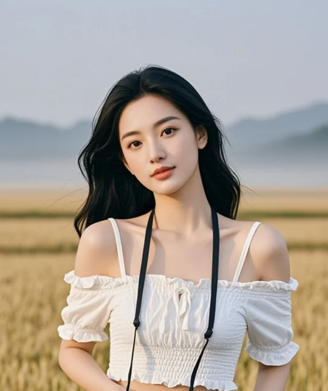 她坐在田埂上,裙摆沾满麦芒,却笑得比阳光还灿烂。