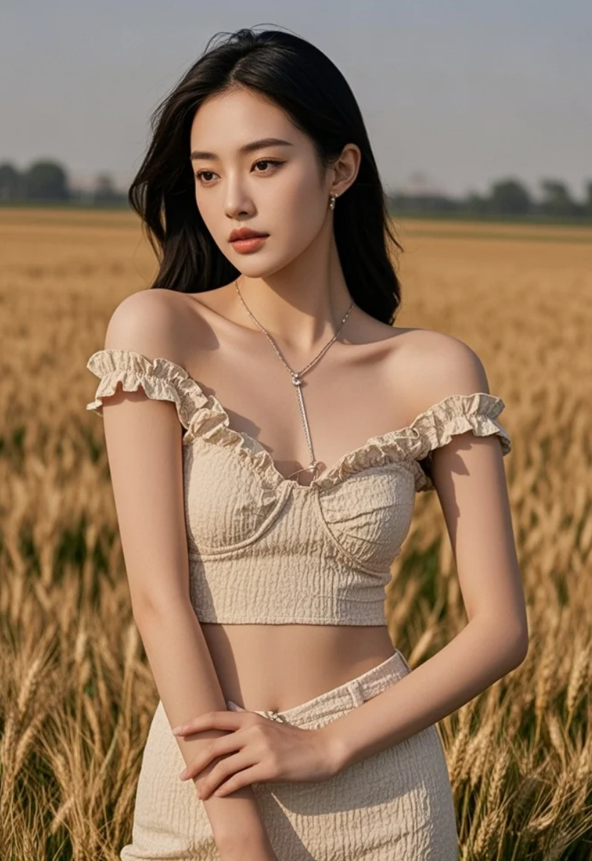她站在麦田中央,仿佛时间在此刻凝固,只留下金色的永恒。