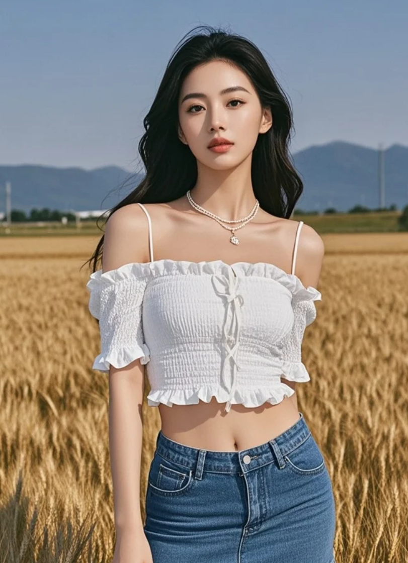 她坐在田埂上,裙摆沾满麦芒,却笑得比阳光还灿烂。