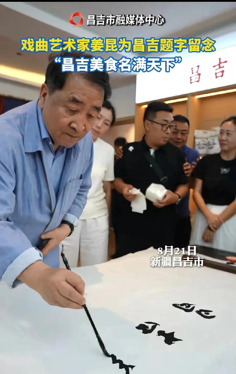 姜昆带队现身新疆,周炜大变样,差点认不出。 近日相声演员姜昆带着戴志诚、周炜等人来到了新疆昌吉,在演出之余他们来到了小吃街。 在品尝当地美食、与群众互动的同时,姜昆还挥毫泼墨,现场为美食街题了字。 一同现身的周炜打扮很年轻,但是头发已经全白,和以前相比变化很大。 照理说周炜今年只有50岁,不至于头发白成这样啊,你看75岁的姜昆还一头黑发,而且精神矍铄,状态很好。
