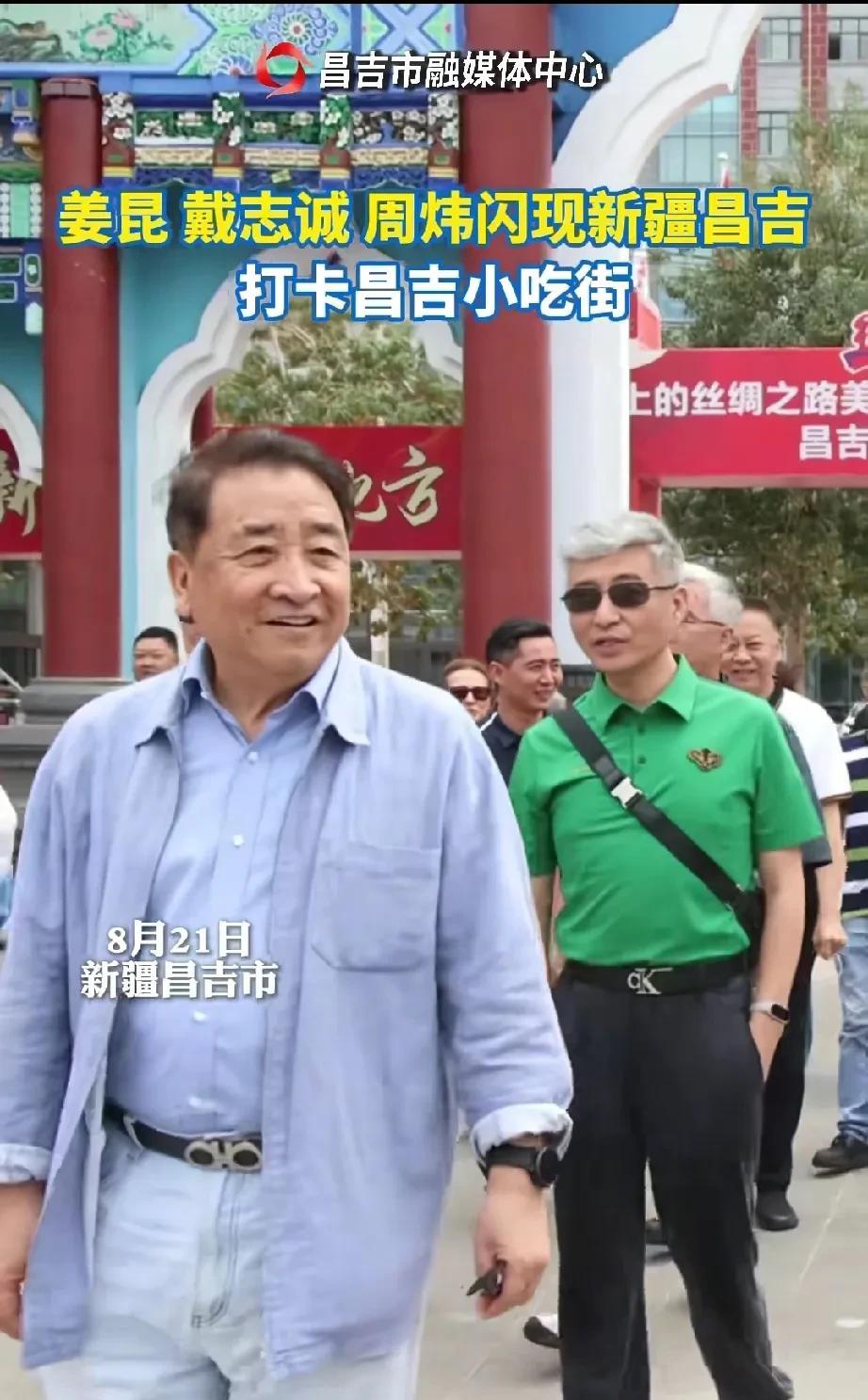 姜昆带队现身新疆,周炜大变样,差点认不出。 近日相声演员姜昆带着戴志诚、周炜等人